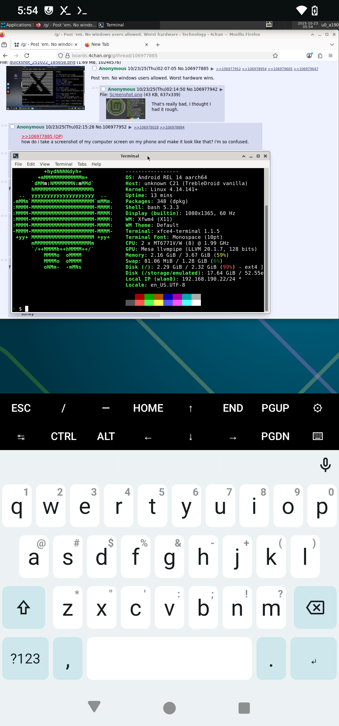 >>106984328Sorry anon I didn't mean to trick you I googled that screenfetch