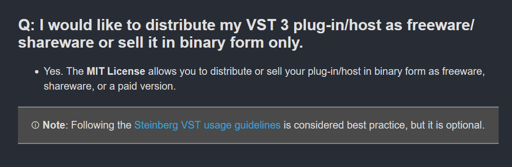 Steinberg changes VST3 licensing to MIThttps://forums.steinberg.net/t/vst-3-8-0-sdk-released/1011988https://github.com/steinbergmedia/vst3sdk/commit/9fad977CLAP and open source won