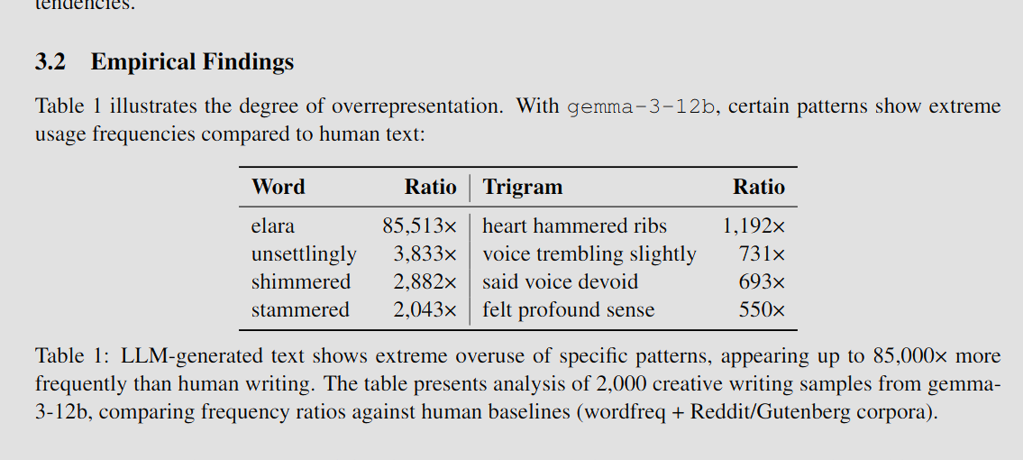 >>106985036>someone read this and tell me why it won't fix everything for coom rpWhat this does is basically baking the antislop sampler (of a year ago, of the same author) into the model in post-training.https://github.com/sam-paech/antislop-samplerThis sampler, like every other sampler out there, is working on the output distribution level and fundamentally can't fix mode collapse which manifests itself semantically. And mode collapse is the real reason behind -isms and stereotypes, i.e. "slop". Fixing it isn't trivial and comes down to the lack of a sufficiently powerful reference of semantic diversity. N-grams used in this paper don't model semantics at all, regexes are manually built, and everything will fall apart in e.g. Slavic languages that heavily depend on word formation. Change your declension and they won't detect it. Same problem as with the DRY sampler. Even semantic enthropy (which they seem to have no idea of?) isn't good enough as a diversity model.