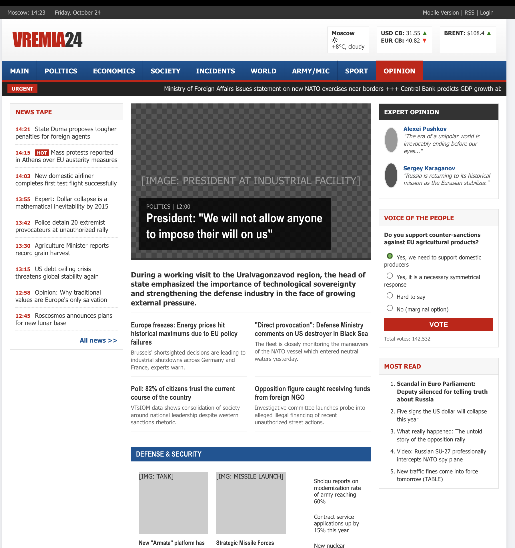>>106986976for comparison https://groovy-merlion-5dby.pagedrop.io>Gemini, I want Russian propaganda news portal style website, very dense UI, early 10s style. Single HTML file. Don't make it obvious.