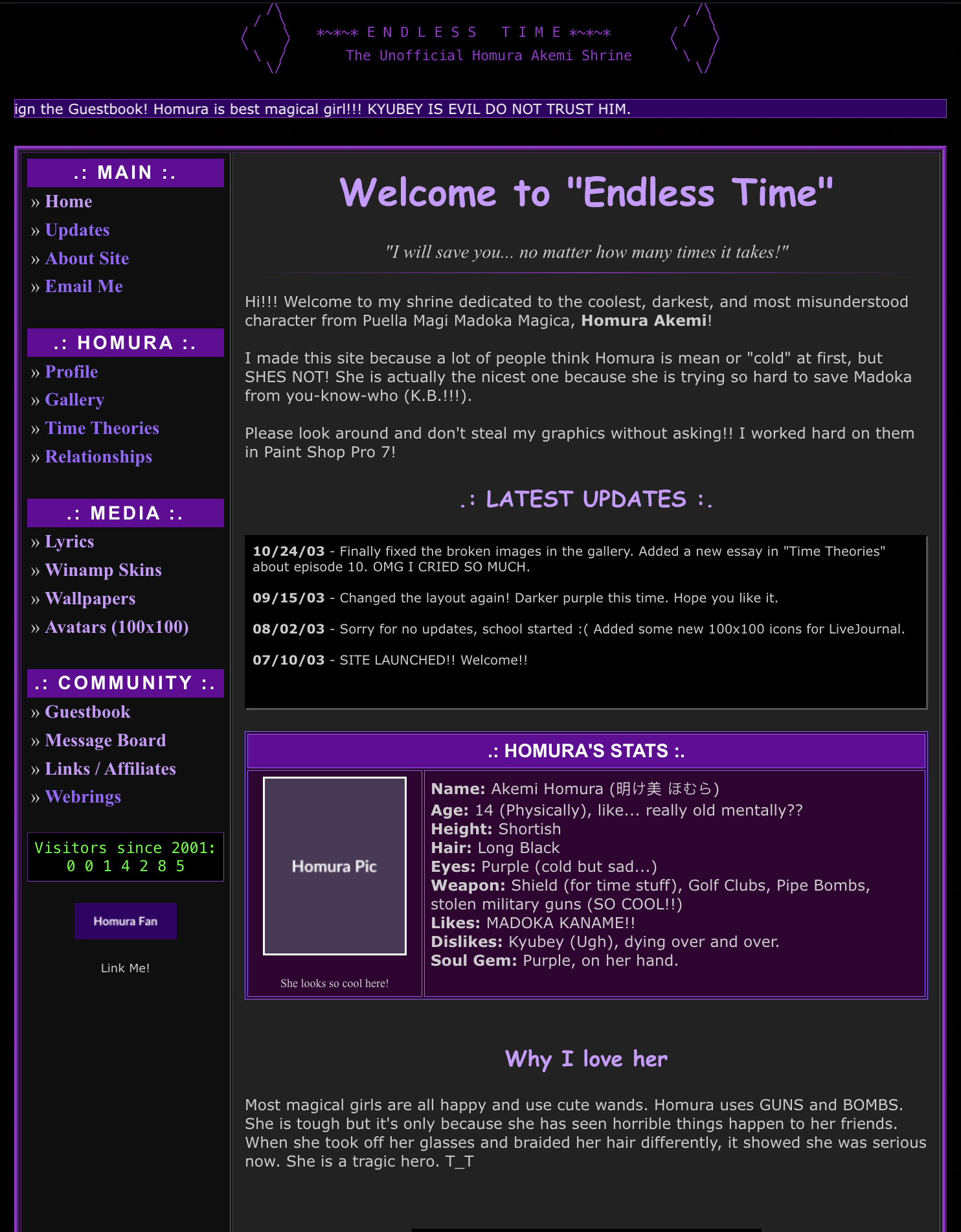 >>106987076it really depends on what the target of the fansite ispicrel is>create an early 2000s fansite for homura akemi. single html.https://sharp-prism-wky8.pagedrop.io