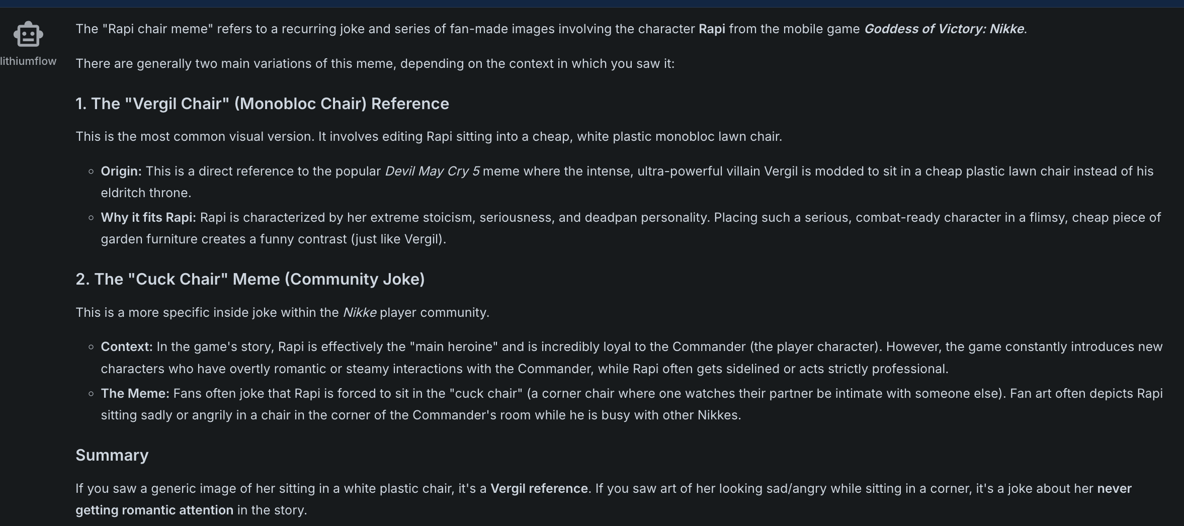 >>106987220That example is pretty interesting given that I had 2.5 fuck up repetitively trying to describe Kakudate Karinhttps://desuarchive.org/g/thread/106910511/#106912297
