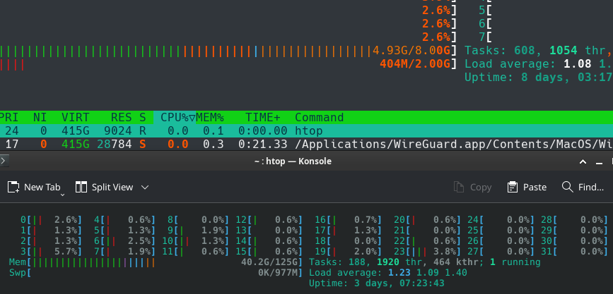 >>106994492>why not 128G?why do you think?>>106994519>now look at macOSpic retarded: top macos 26 via ssg, bottom my main rigmacos 26 is as laggy as kde or gnome is.you click a menu and it takes a few ms to open it up the first time. then you don't do it for another 20 mins and you try again, it again lags a few ms.note this macos config is not out of the box. I had to disable the wallpaperaerialsextension process because it has read 60GB from the ssd.