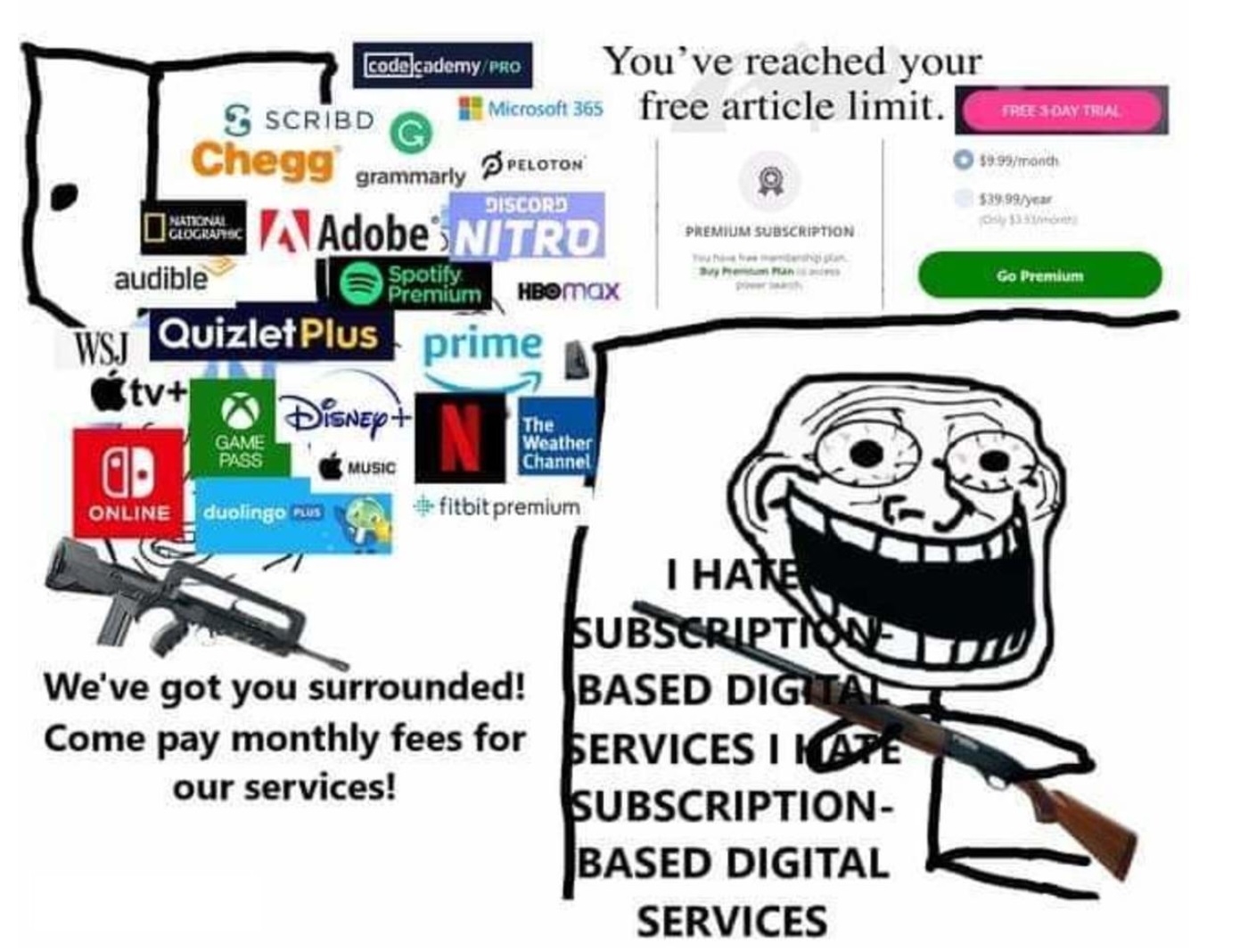>>106997057So you hate subscription services but*checks notes*You pay a subscription service to physically exist on landAnd also claim to support capitalism and housing being for profit/sepculationCurious...