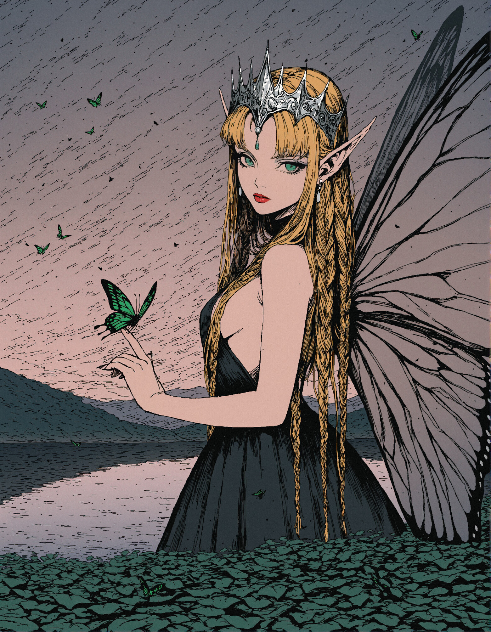 >>107006326It is more associated with "pointy ears" than elf, as I can get it with "demon girl" or "fairy" as in pic related.>>107006523Wow those do look a lot like the earrings I keep getting, especially when not trying to prompt around it. But does Chroma know "Frieren"? I thought it had characters and styles removed.