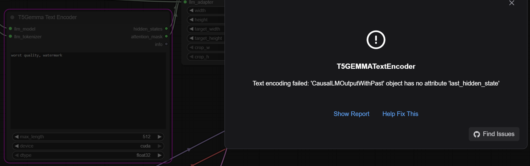 Can't make Minthy/Rouwei-T5Gemma-adapter_v0.2 work. Provided workflow requires full Gemma so I add a gguf loader node, but then I get a picrel error. LLM SDXL nodepack updooted to 3.0.1.