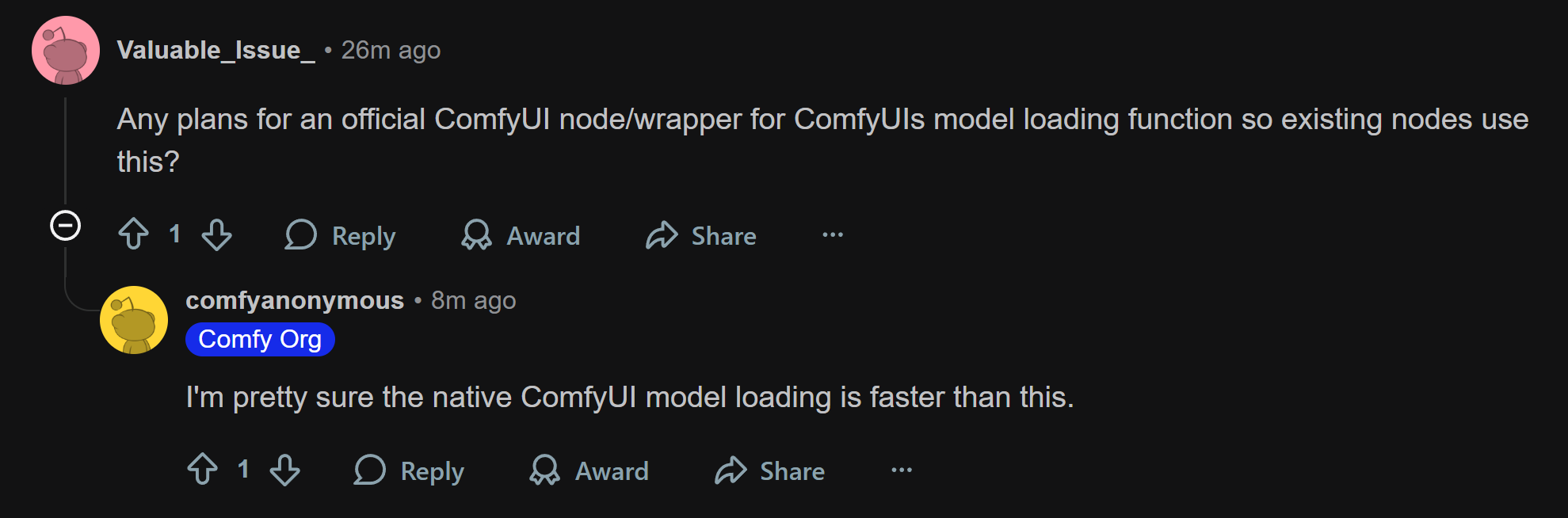 >>107007536Model load is the most frustrating thing about comfyui...>wan2.1>takes minutes at the sampler then starts genning or clip keeps offloading then loads forever or memory leaks after 5 gens where I have to force close comfy>all-in-slop>constantly offloads the entire fucking model and have to wait another 10 minutes for it to all load again>wan 2.2>while the fastest and least pain in the ass, constant and increasing pausing in between high and low generation