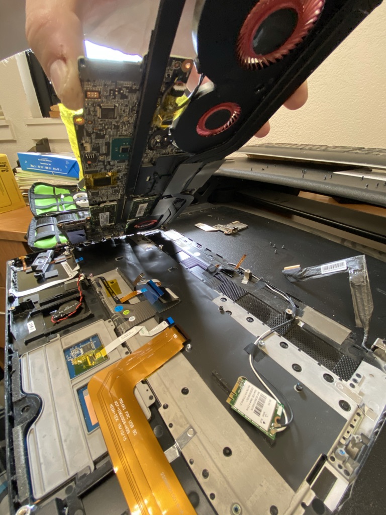 mobo mounted to top case has to be completely disassembled to upgrade m.2/memory