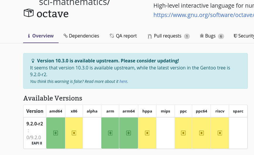>>107015477>The "stable" branch is running latests releases of programs, why do you need "unstable"? If you need bleeding-edge, 9999 ebuilds just work.outdated, no 9999 build, joke distroGentoo 18k 15k 11k 76.7% 3.1k 22.7%, according to repology 22.7% of packages are out of date lmao