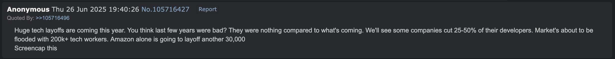 >>107039646They'll just toss me into the next round of layoffsI don't work at AMZN, but my company does them too