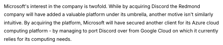 >>107043808Why do you think Microsoft buys up companies? Because they do it to get customers for Azure.