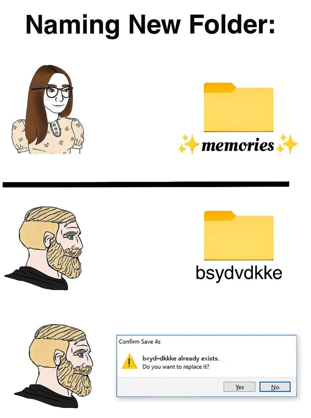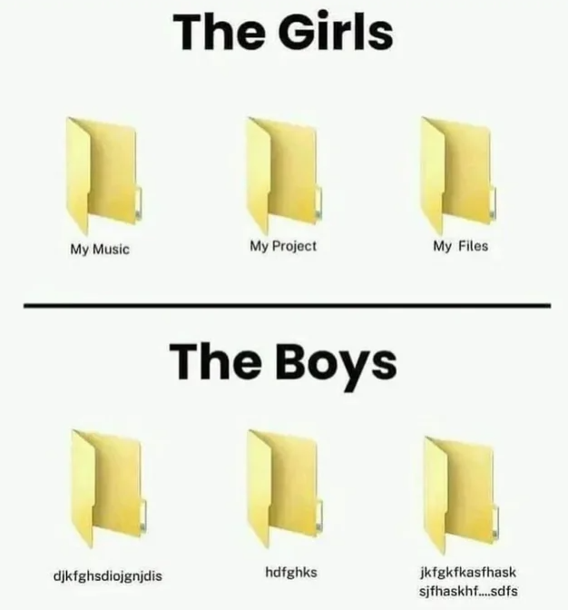 >Girls: trust the defaults Microsoft gave them>Boys: know not to trust Microsoft, instead going with whatever works for them individuallyAnyone using Windows with more than half a brain understands you don't keep anything valuable in the default directories. There's too much risk of Microsoft either copying it without you knowing or fucking up the files with some new buggy "feature".