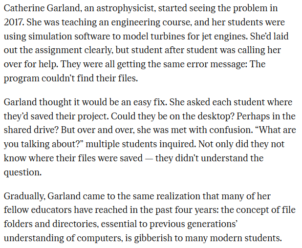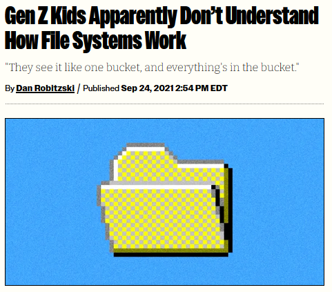 >>107039416To be fair, newer generations mainly use phones. And if thats your first experience with computers i can understand not knowing about file structures. When you download an imagen where does it go? To the gallery of course. Phones pretty much act like files don't exist.