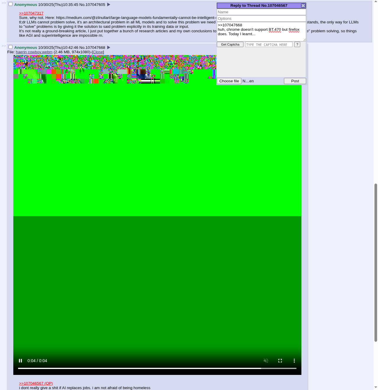 >>107046847Link? I'd like to read itt. op>>107046920I never said AI will be intelligent, I was talking about productivity
