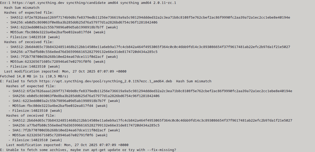 gives me pic rel. The syncthing entries at /etc/apt/sources.list.d/syncthing