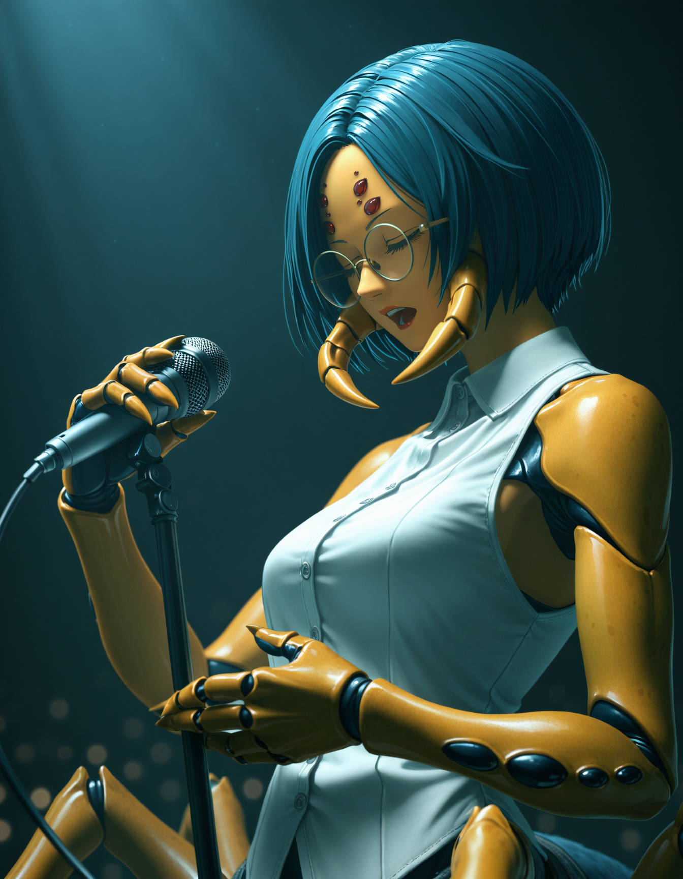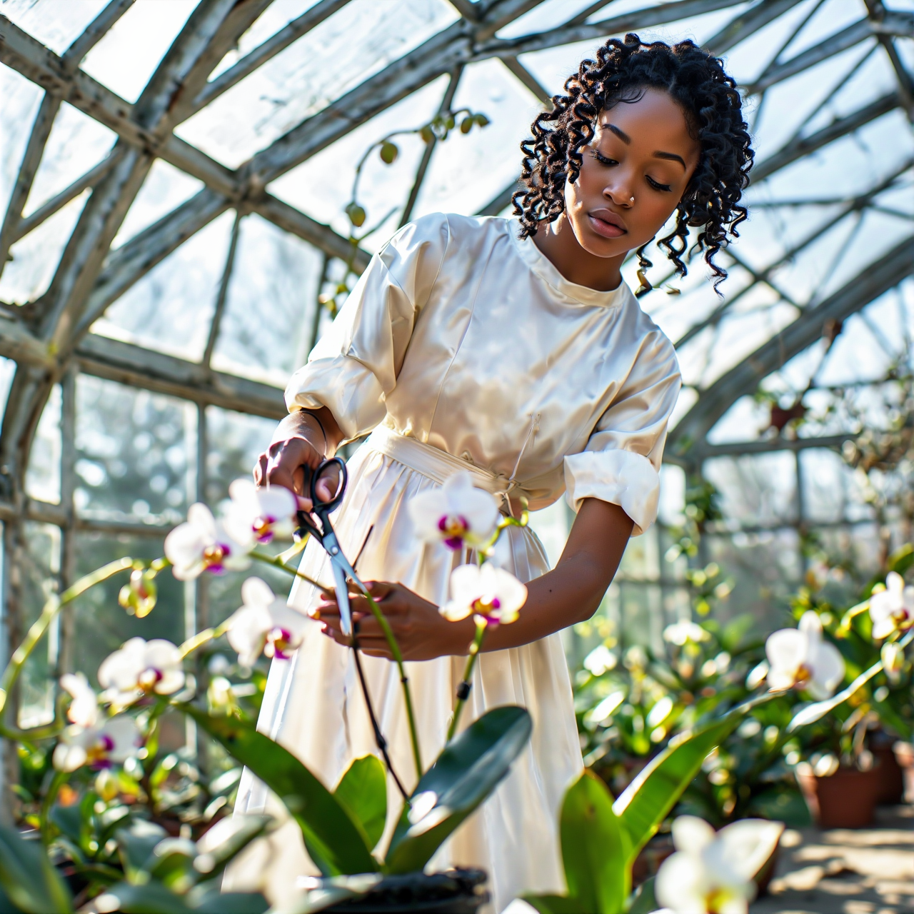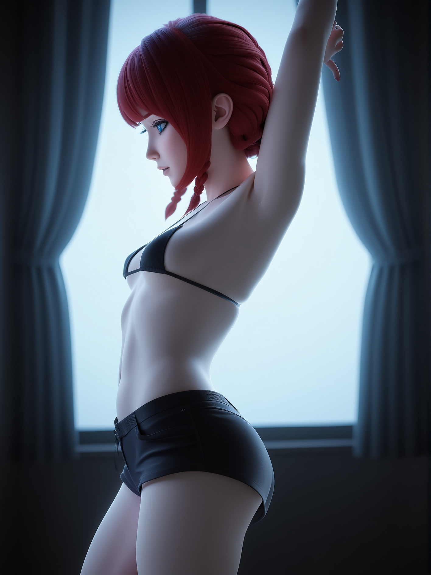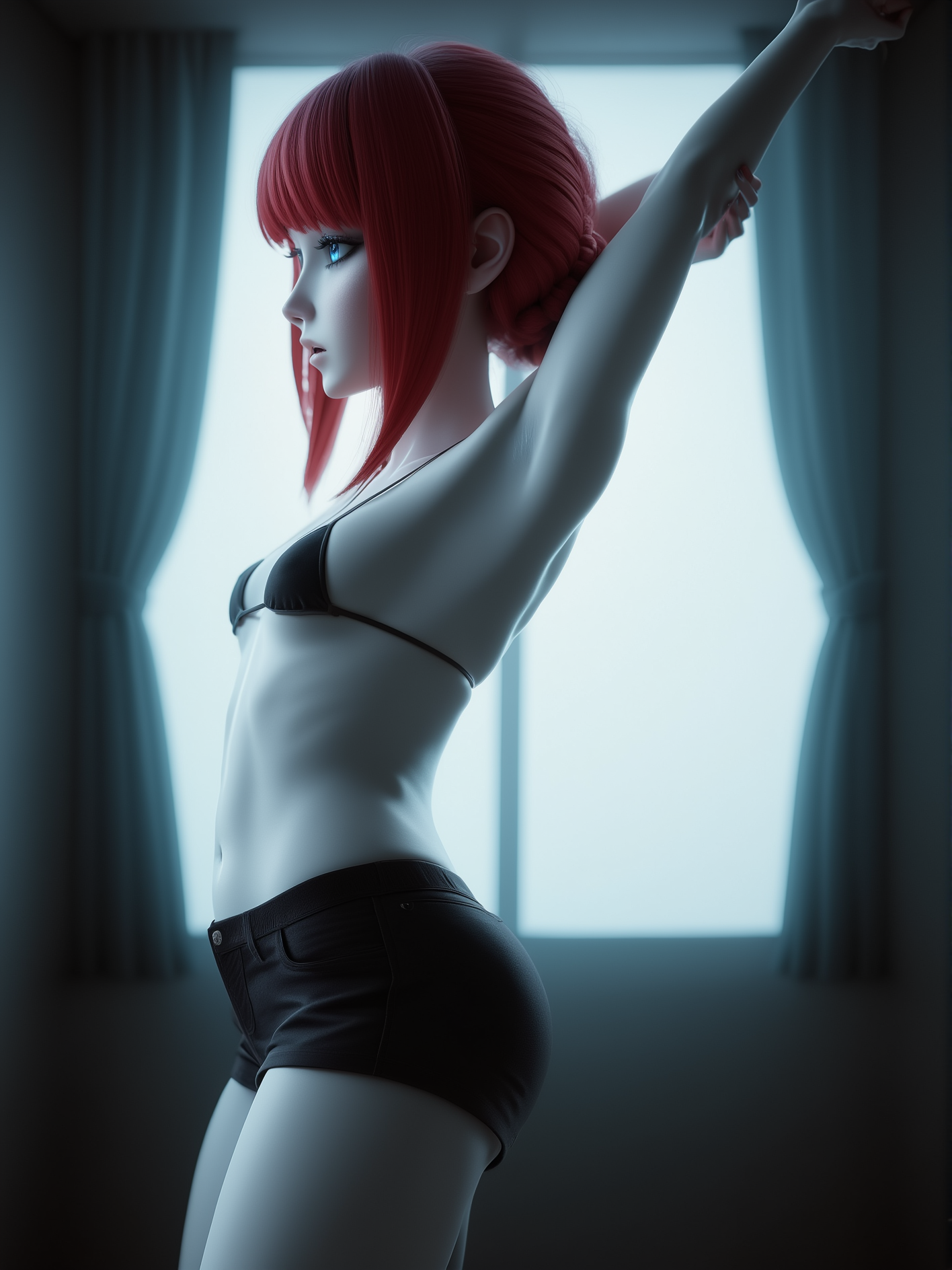 A stunning woman moving backwards fluidly with expressive, rhythmic motion, leaning and swaying with precision, arms flowing gracefully through the air, body in perfect control, each movement filled with emotion and energy, confident posture, captivating presence, hair moving with her motion,
