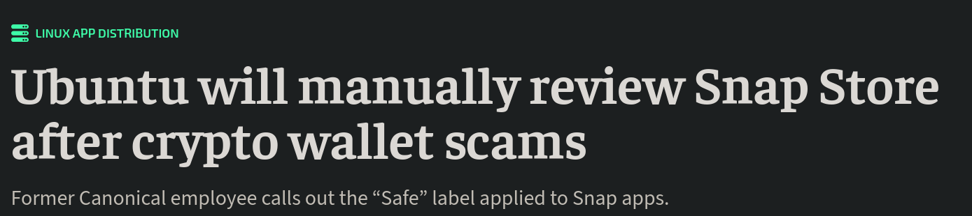 >>107065793-selinux actually confining a lot of processes ootb (apparmor on ubuntu/debian has enforce mode set for like 20 basic processes kek)-more up to date packages so no more begging canonical for security fixes-ubuntu pushing snaps and a lot of them are buitl with outdated core libraries, nobody bothers updating them and ubuntu doesn't really care either-malware in the snap store (happened twice or three times if i remember correctly)-ubuntu holding back security fixes behind their shitty ubuntu pro so you have to create an account and link it with your device to get themprobably a lot more idk