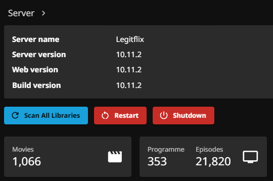>jellyfin | [21:01:22] [INF] [12] Emby.Server.Implementations.ApplicationHost: Core startup complete