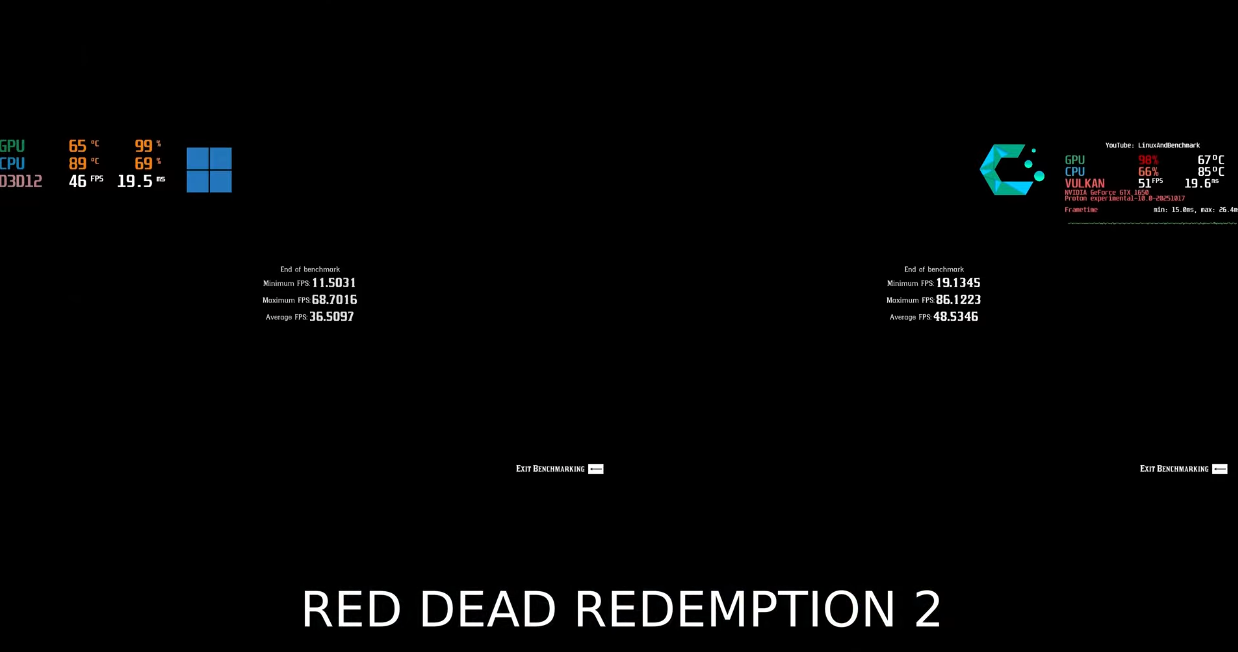 In this case though you're showing fuckall OP. No settings, no frametime graph on both sides showing gameplay, we don't know what's running, we don't even know it's the same fucking hardware. We know that on linux it's running on an ancient GPU, there's no gaytracing involved and that comparing both data on the screenshot, I wouldn't say the game is actually playable on either. Maybe you wouldn't need to switch your OS if you could just afford decent hardware.