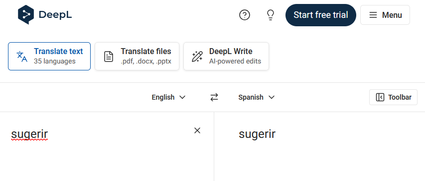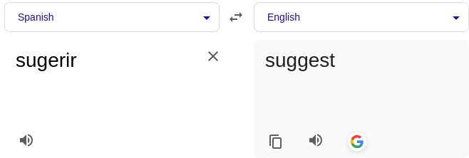 Somalian used to have loads of these. What does "sugerir" actually mean, anyway? Is it "suggest"?