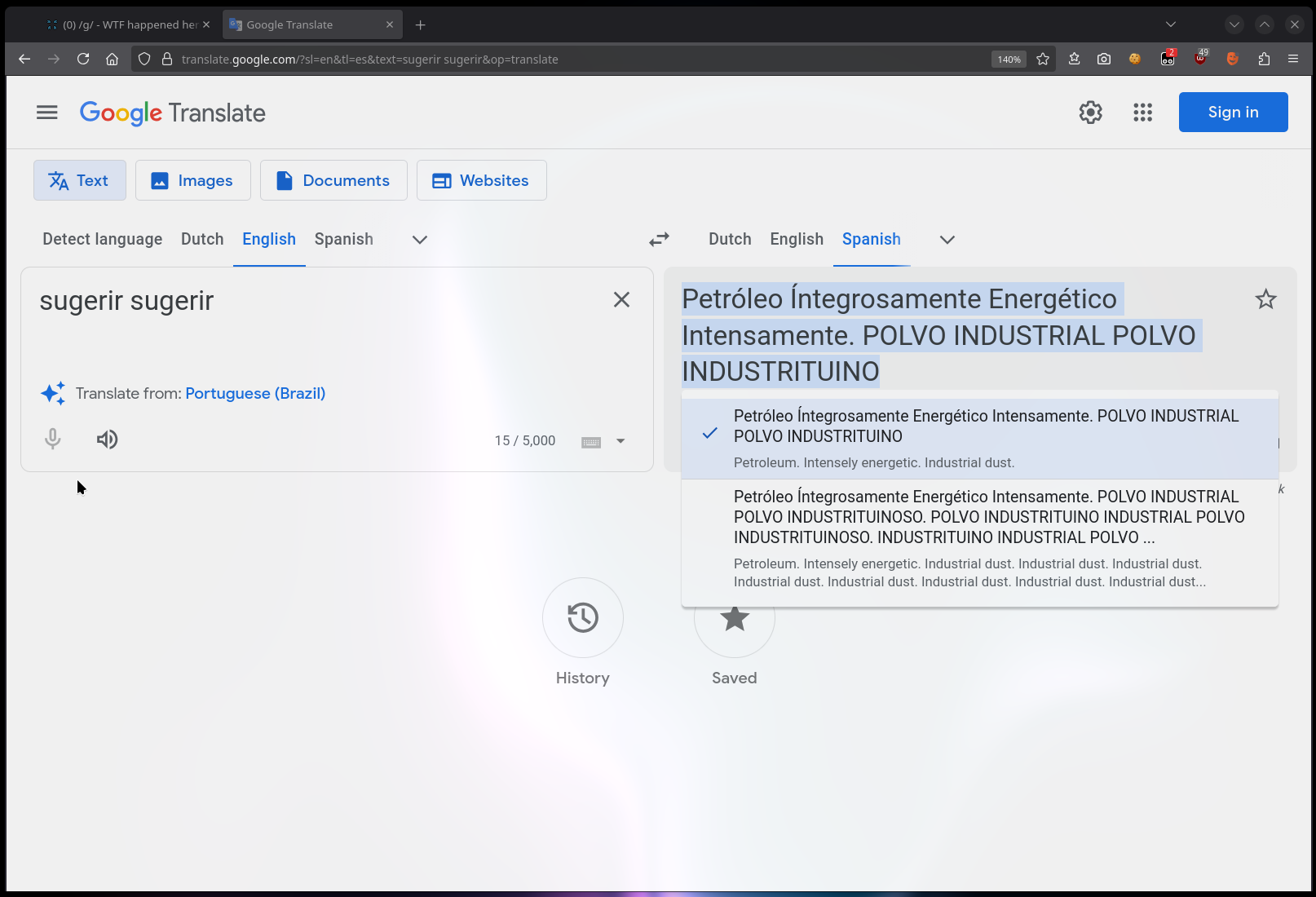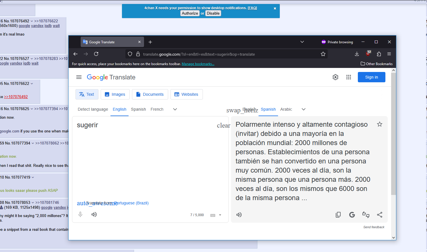 >>107076370ai overfloodthese retards have AI api linked to translate too so i guess what is happening is that when you try to translate something it throws you AI response.