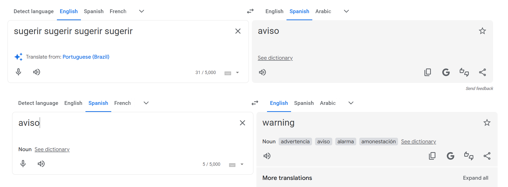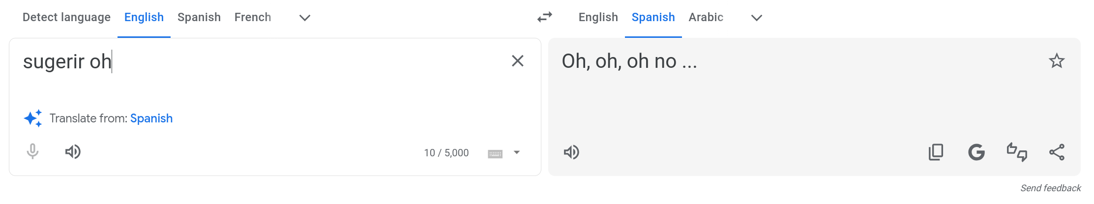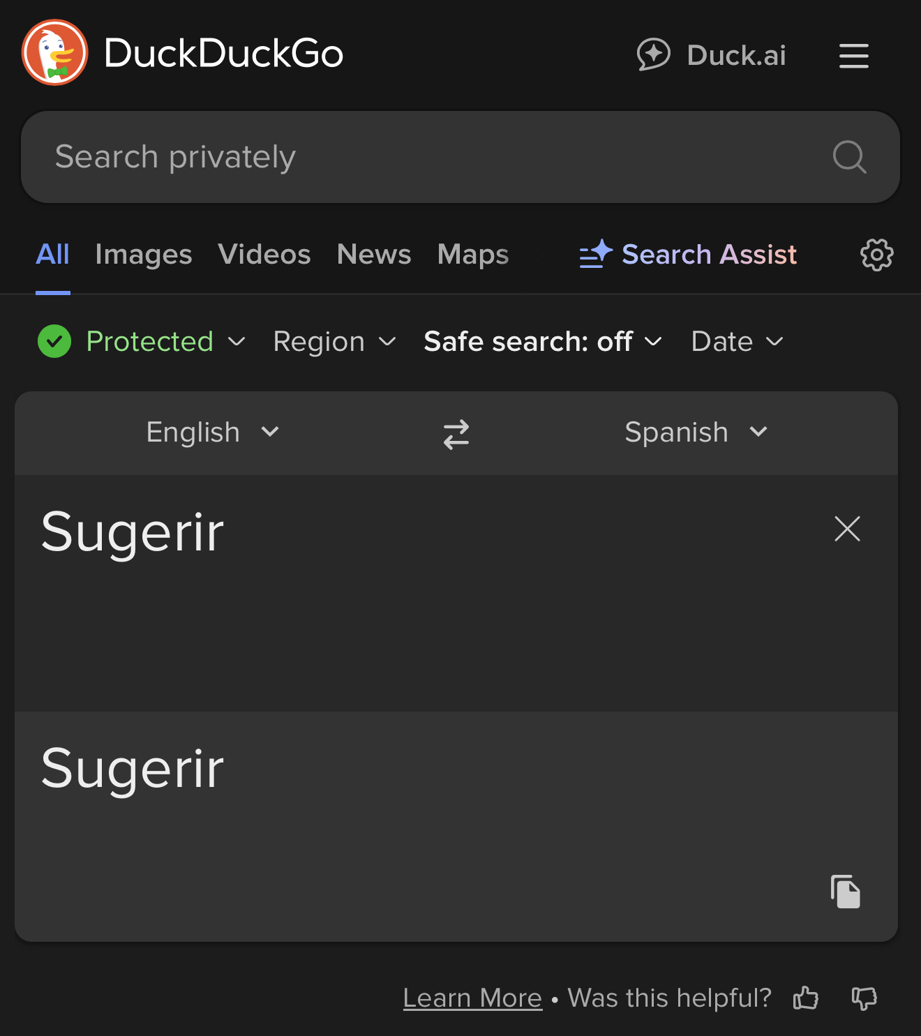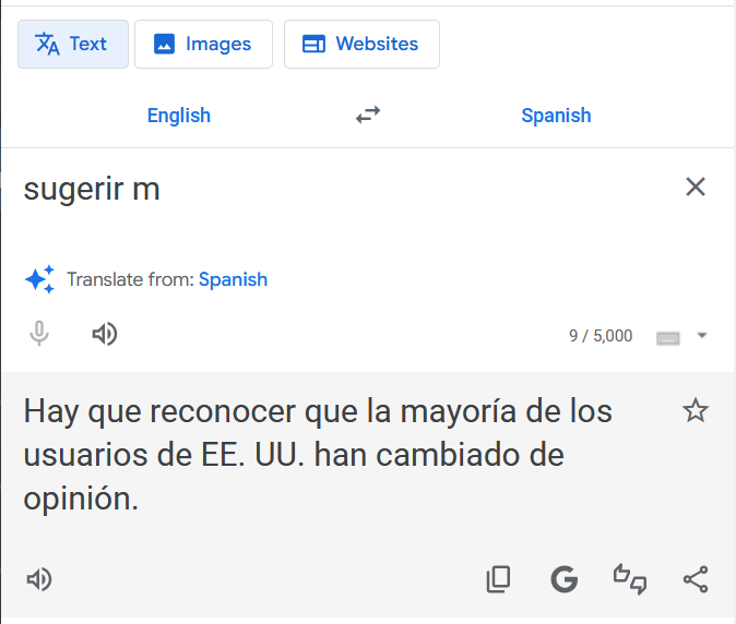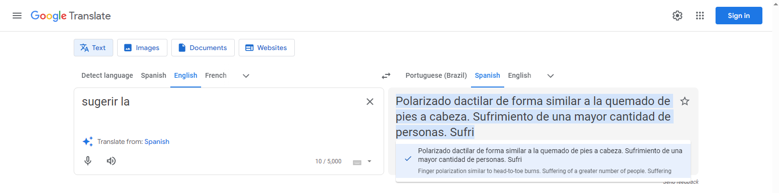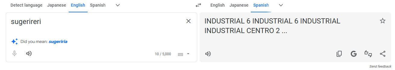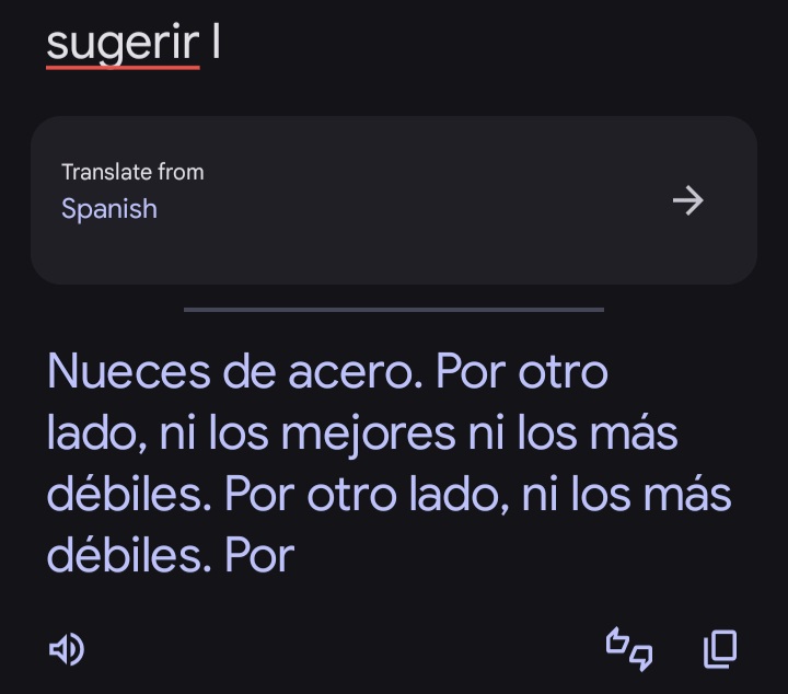 >>107078062Apple uses google translate, AI training has actually become very incestous. This is more amusing than previously thought because google is using 2 separate AI models when you use it through a google server vs the direct google.translate website.Also these translations are wrong no matter what because there is no "sugerir" in English...