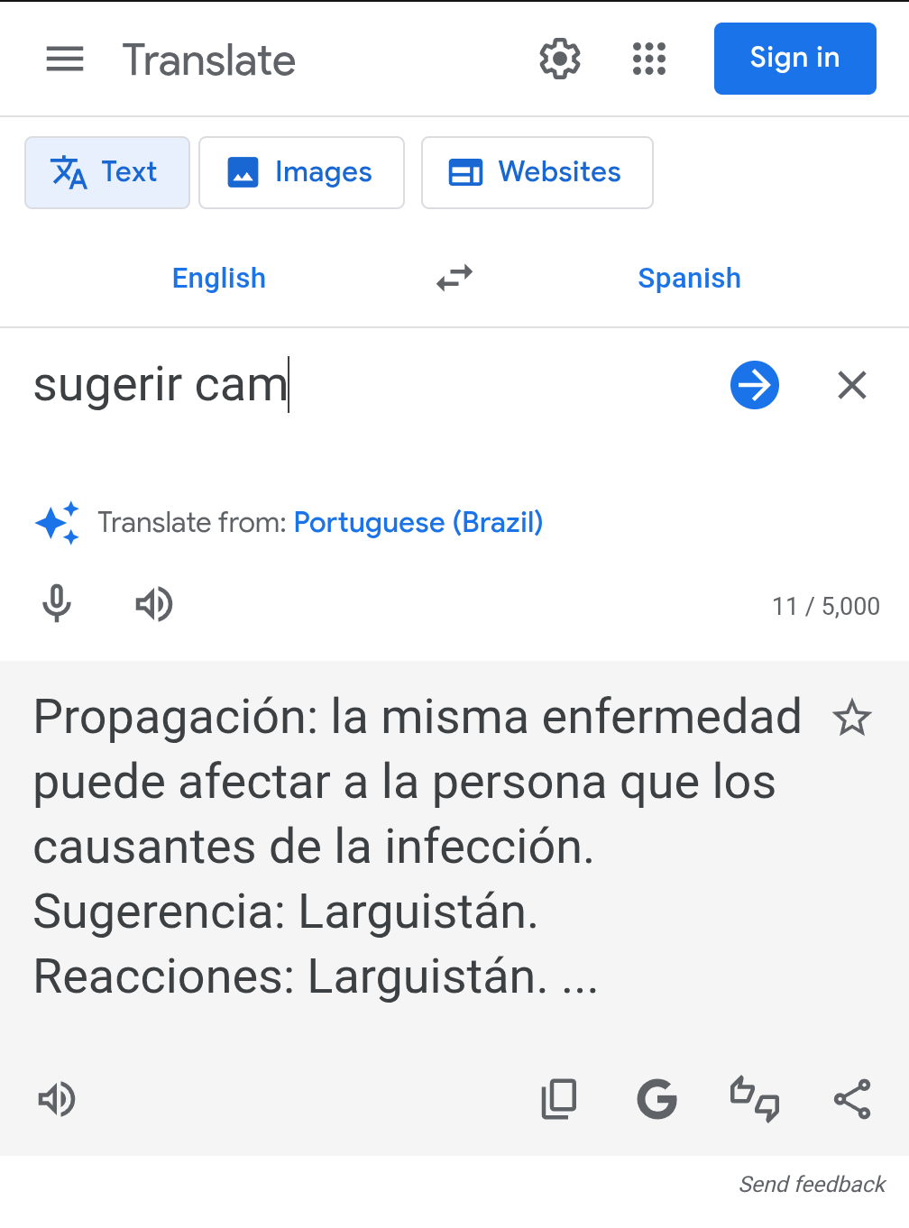 Other weird results :>sugerir (po>sugerir (la