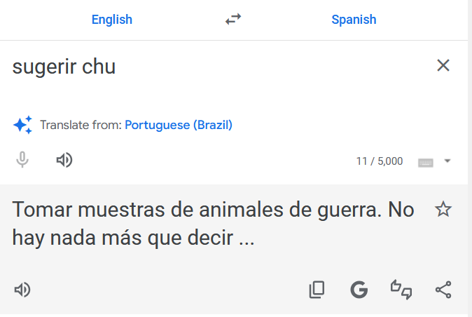 >"Take Samples from war animals. Nothing else to say"WTF. Most of the outputs are latin american spanish that I barely can understand.