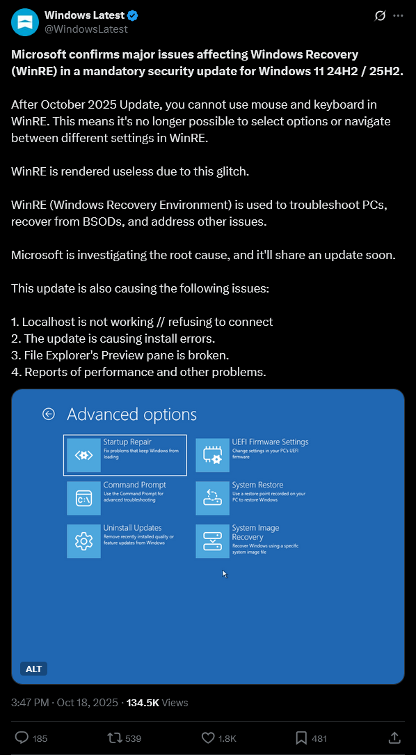 >>107079311Windows Updates are Safe & Effective™ but be advised, minor side effects may include BSOD and boot issues. Not a bug but a feature.