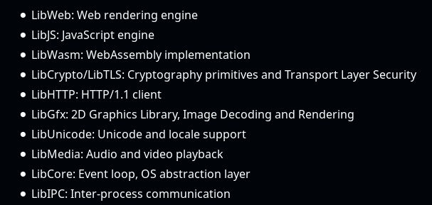 >>107077198it follows the idea of serenityOS where they dont reuse code and they are making it from scratch albeit using libraries like ffmpeg etc. when its necessary
