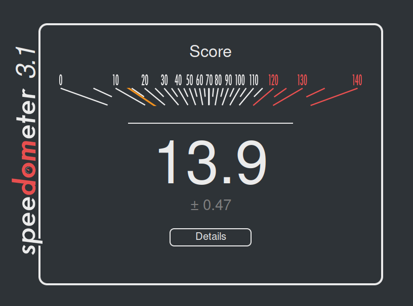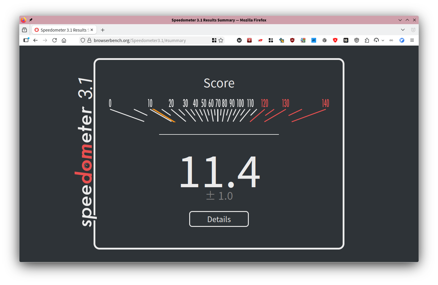 Firefox, 10500H on Linux. Same computer gets 14.7 in Chromium.