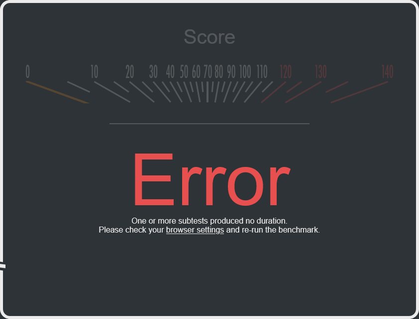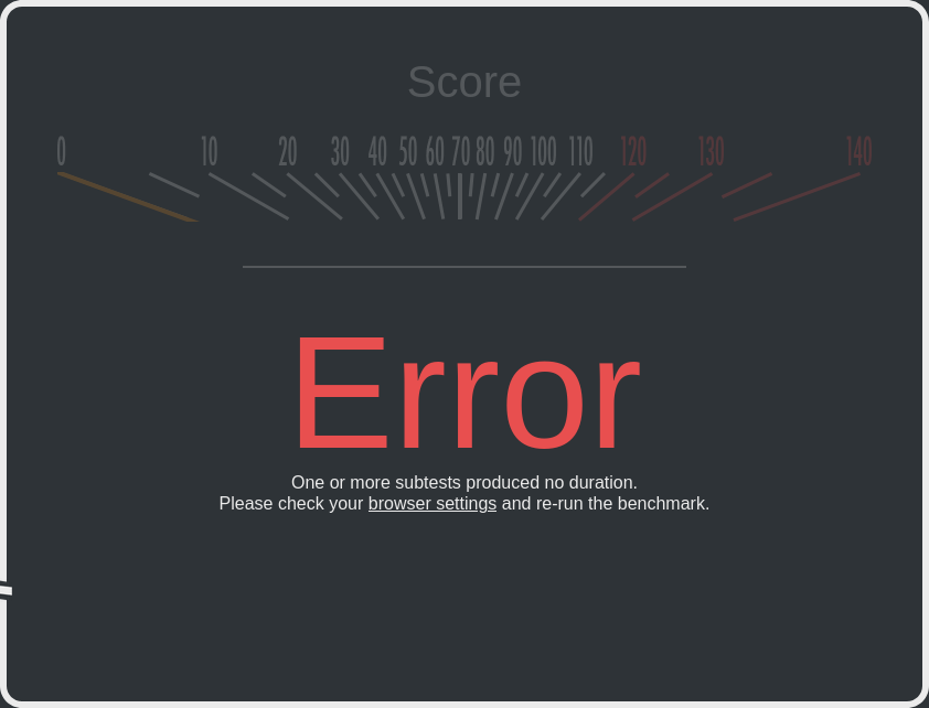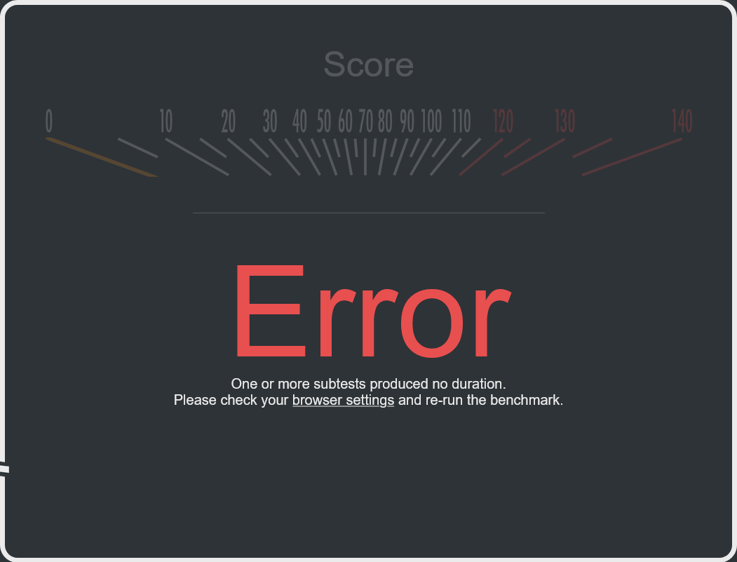>>107101229All extensions were disabled for the M4 test. Anyways just repeated it and got "Error". The test itself is glitchy as hell.