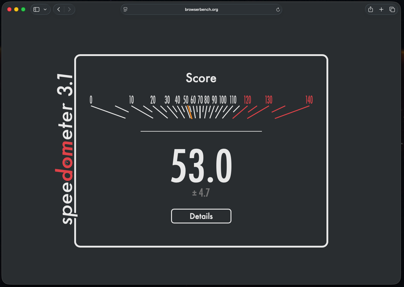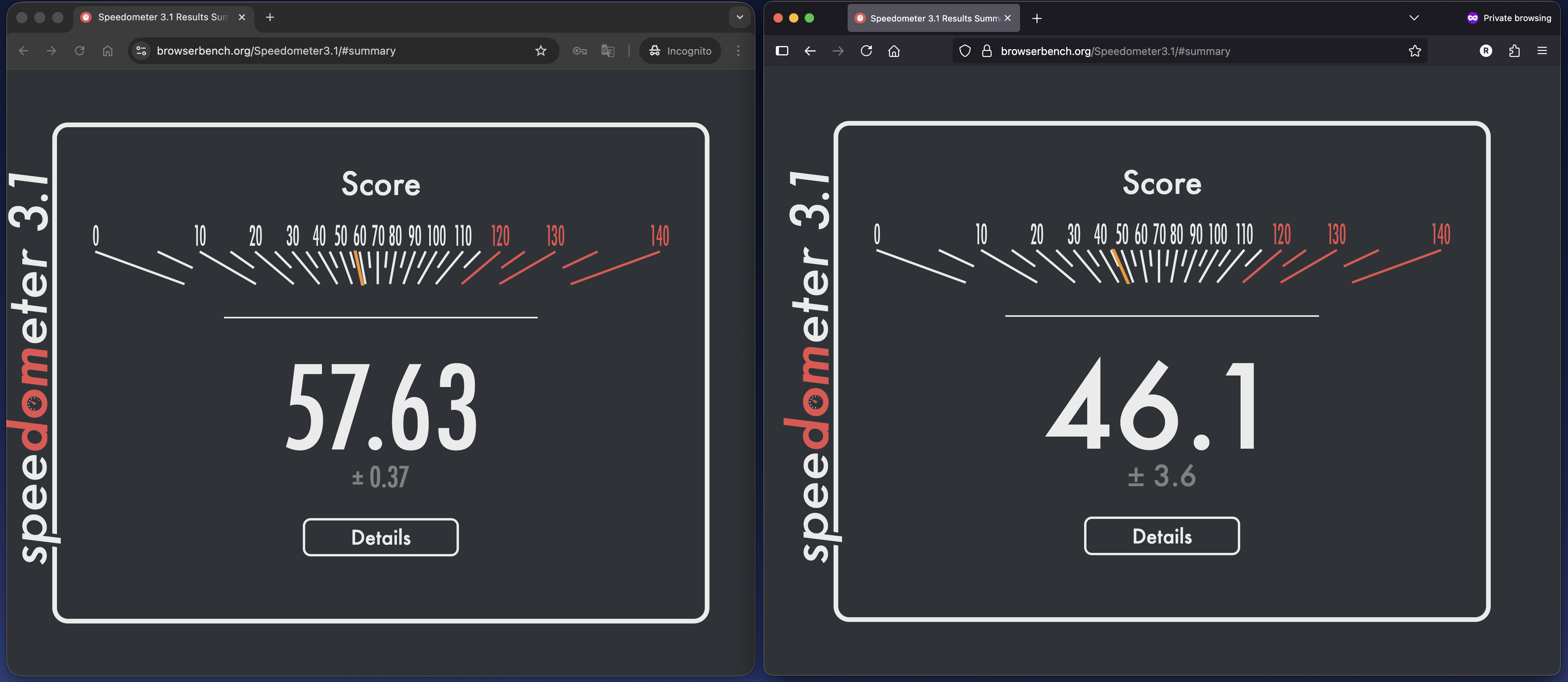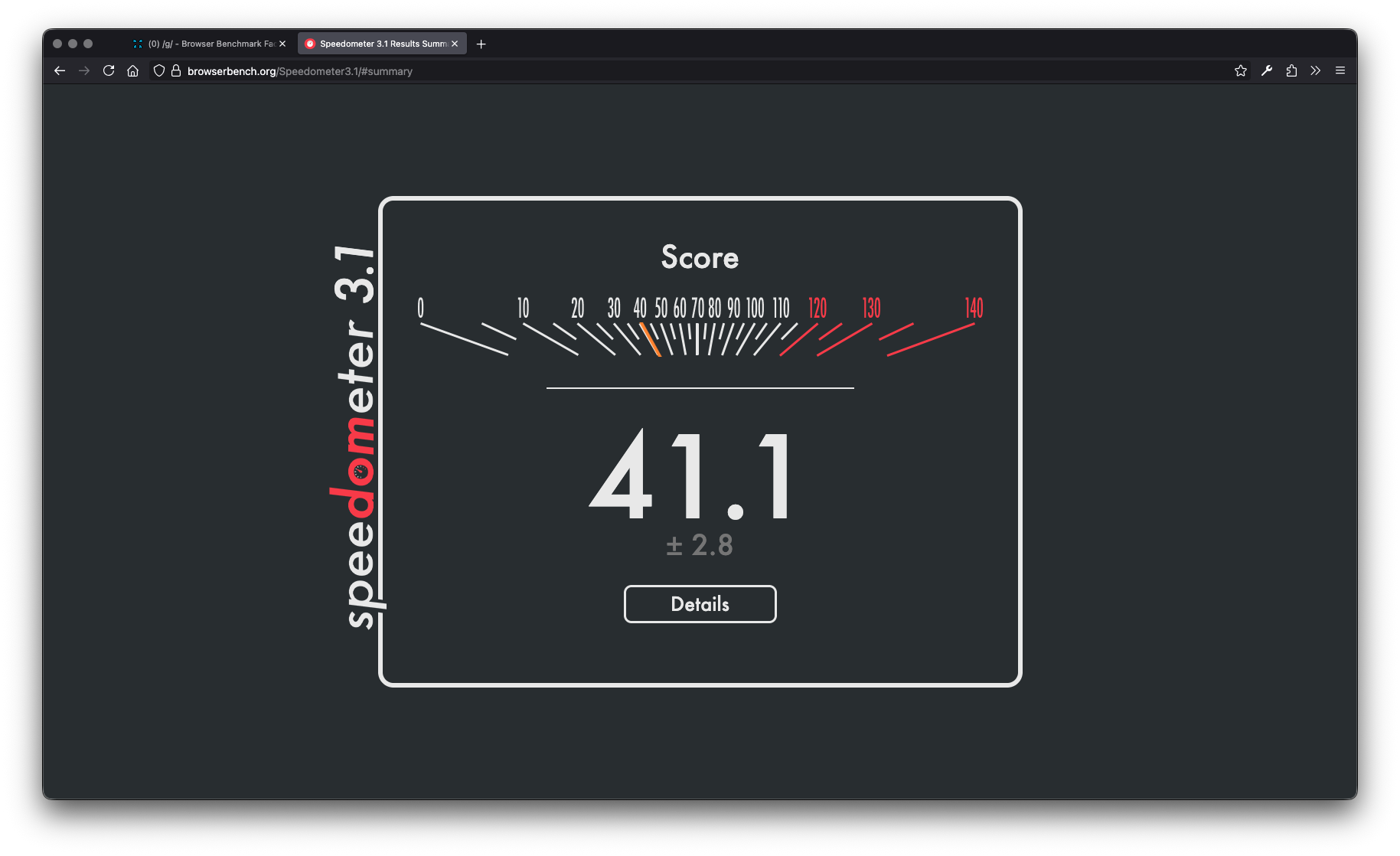 >>107093437Base M4 Macbook AirFirefox = 39.3Safari = 44.5