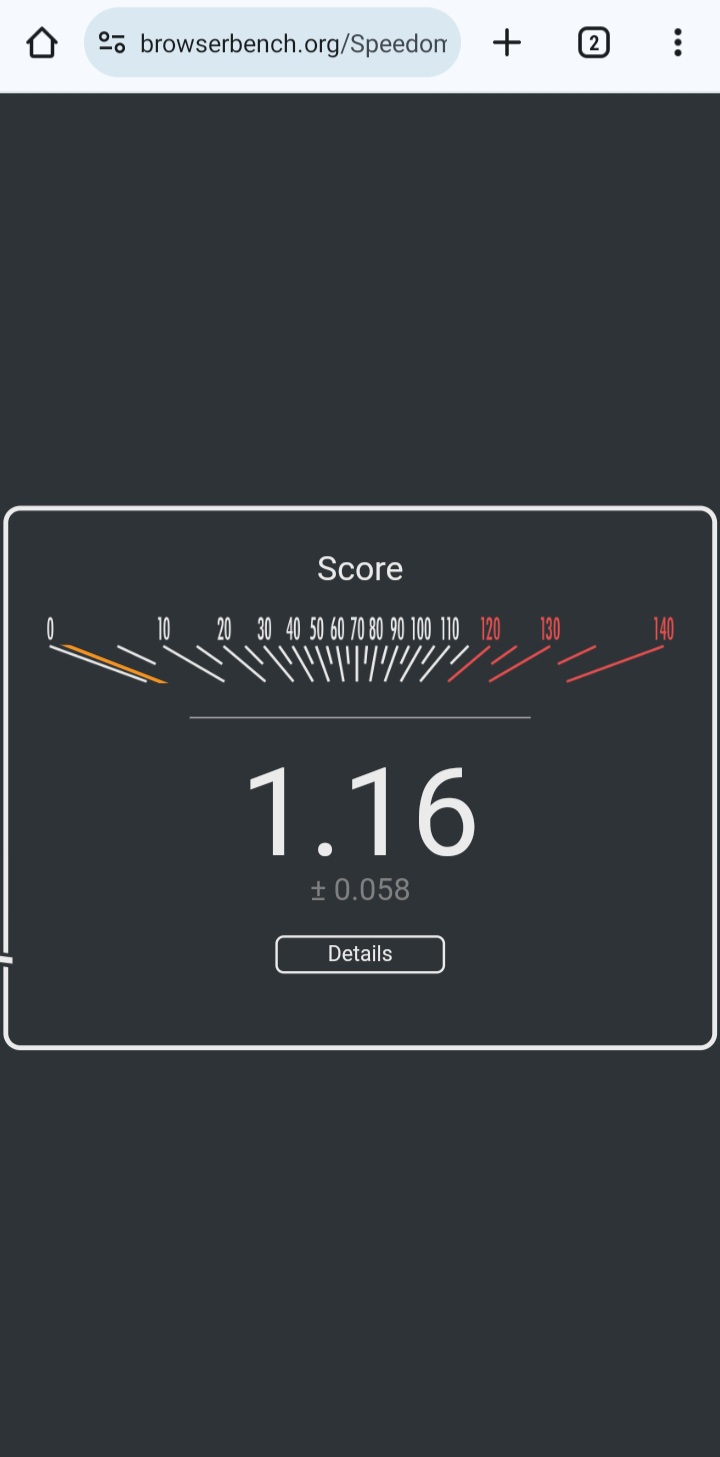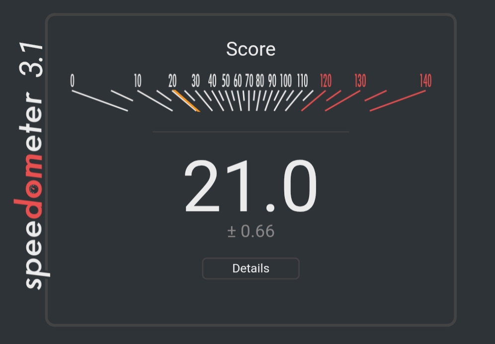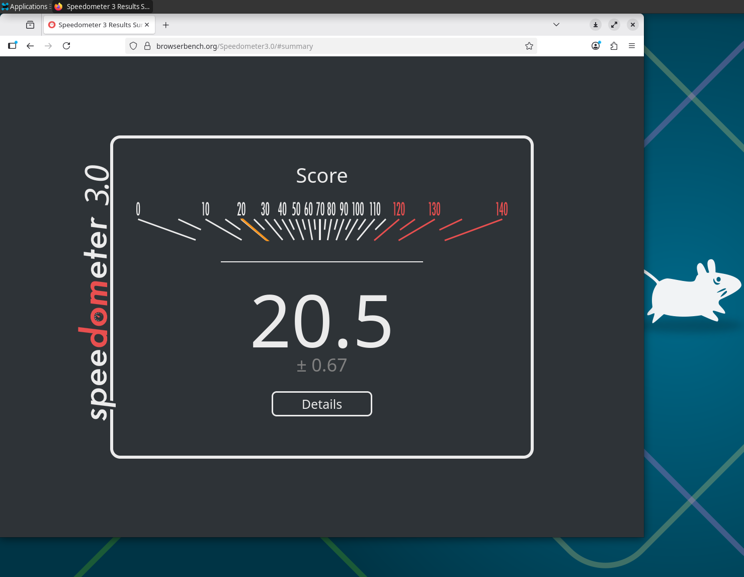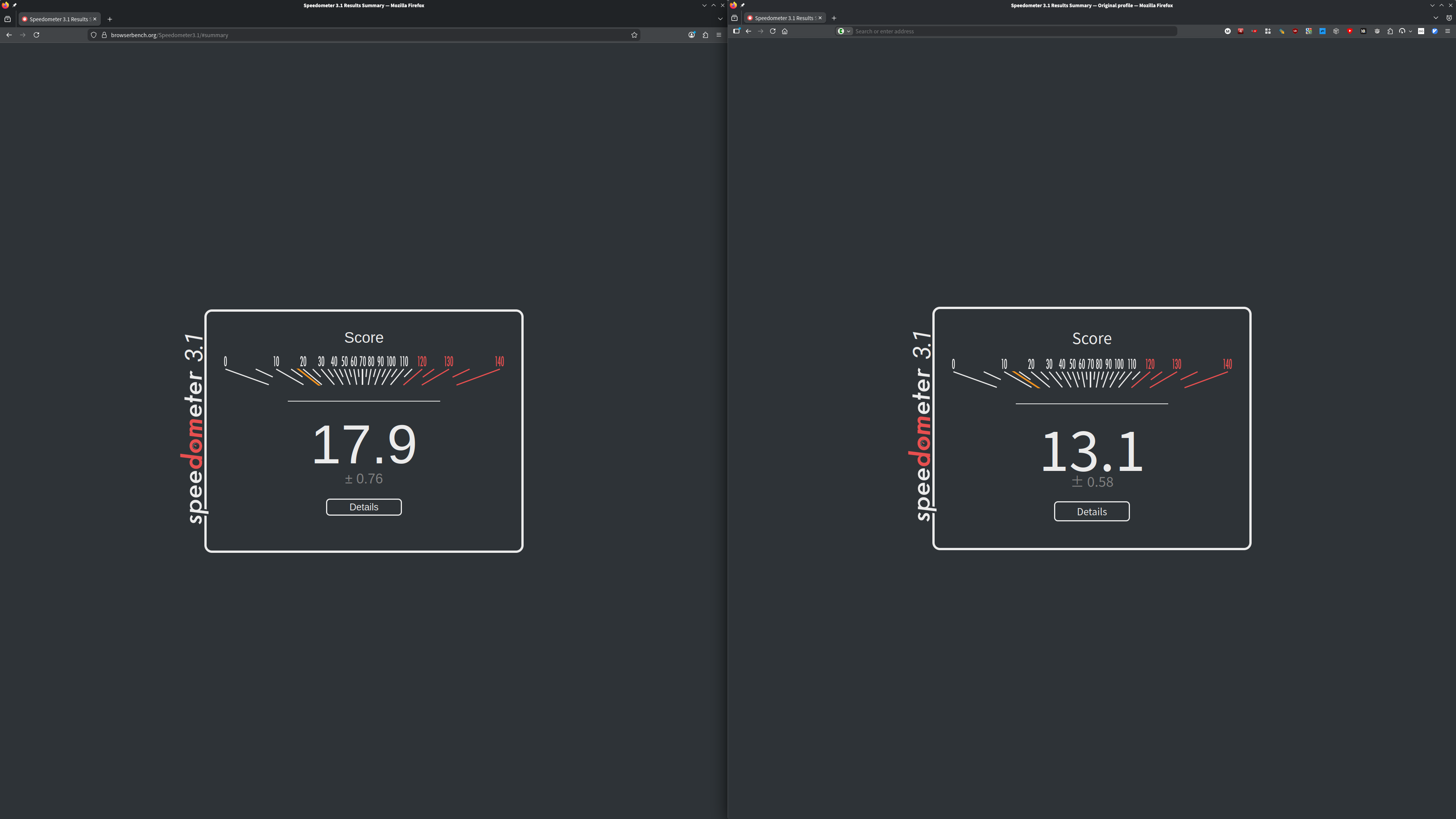 >>107089595Why is my computer so slow, frens. Pic related is Firefox+Ubuntu, on Firefox+Fedora I get score 7.83