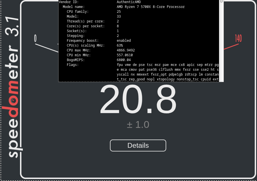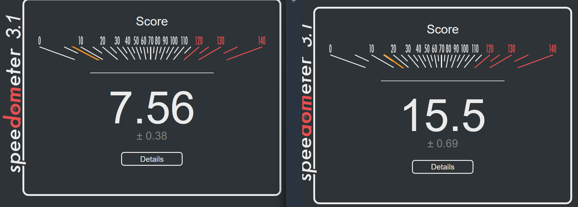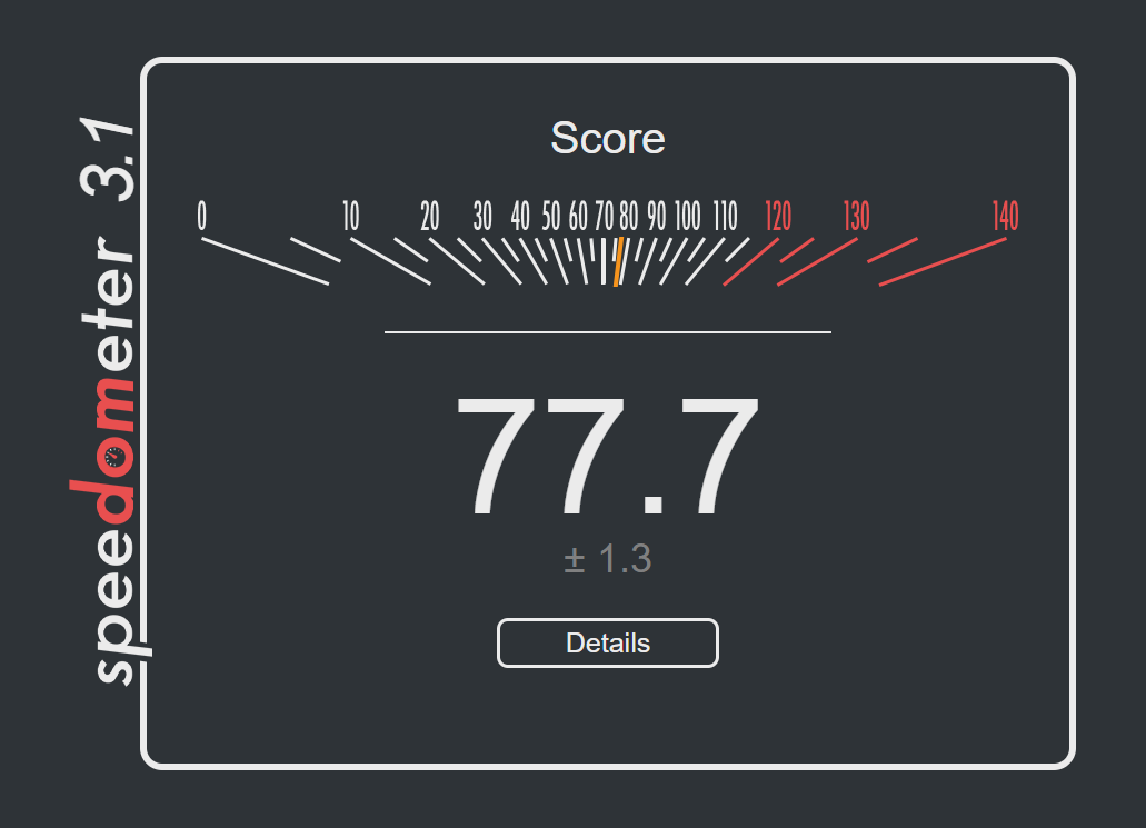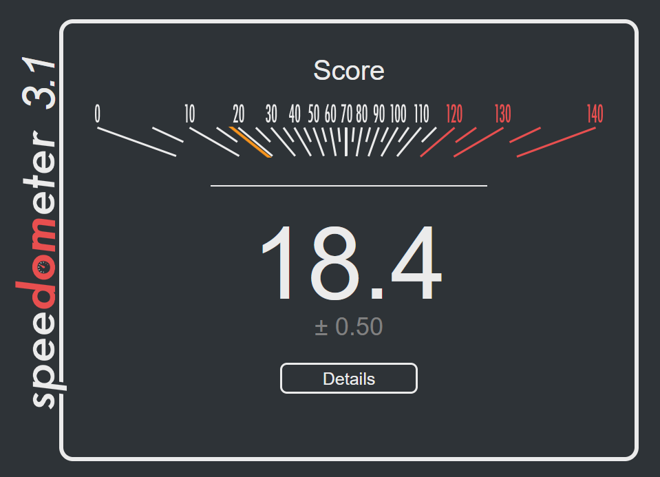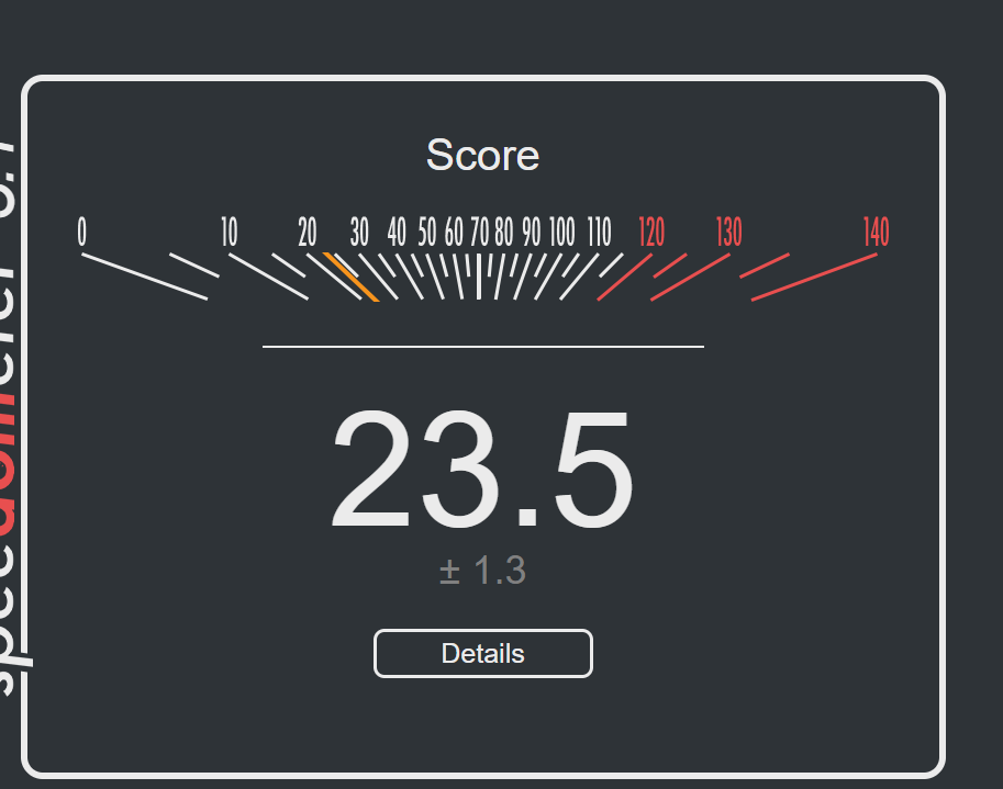 >>107089595Why is my computer so slow, frens. Pic related is Firefox+Ubuntu, on Firefox+Fedora I get score 7.83