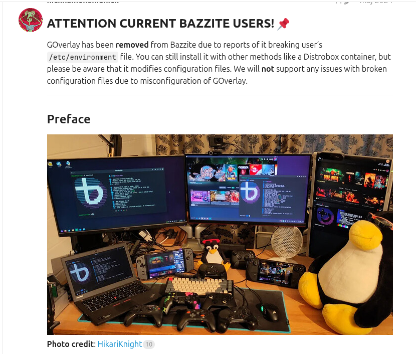 >>107091397>t. i dont know how software works and will just reiterate what is spammed the most on /g/bazzite preinstalls nearly nothing outside of steam in a flatpak container. Everything else is disabled by default and has to be explicitly enabled.Even if why do you think that 1 or 10000 installed applications has any impact on performance? You do realize the applications do not autostart (and even if they would you could disable it)>That doesn't mean it will perform better than other distro.Bazzite has kernel patches for specific hardware uses a different kernel schedule and has many many other kernel tweaks. how could i expect mom my xorg.conf to understand anything though. keep repeating what the strongest bots on g spam.What I read here once about Bazzite seems true. It is exclusively for the absolute normies and absolute powerusers. 90iq retards will pass on it because they think they are +120iq while only following whatever is spammed the most (typical 90iq behavior someone with +120iq would take the time and read why something is hyped from official documentation)