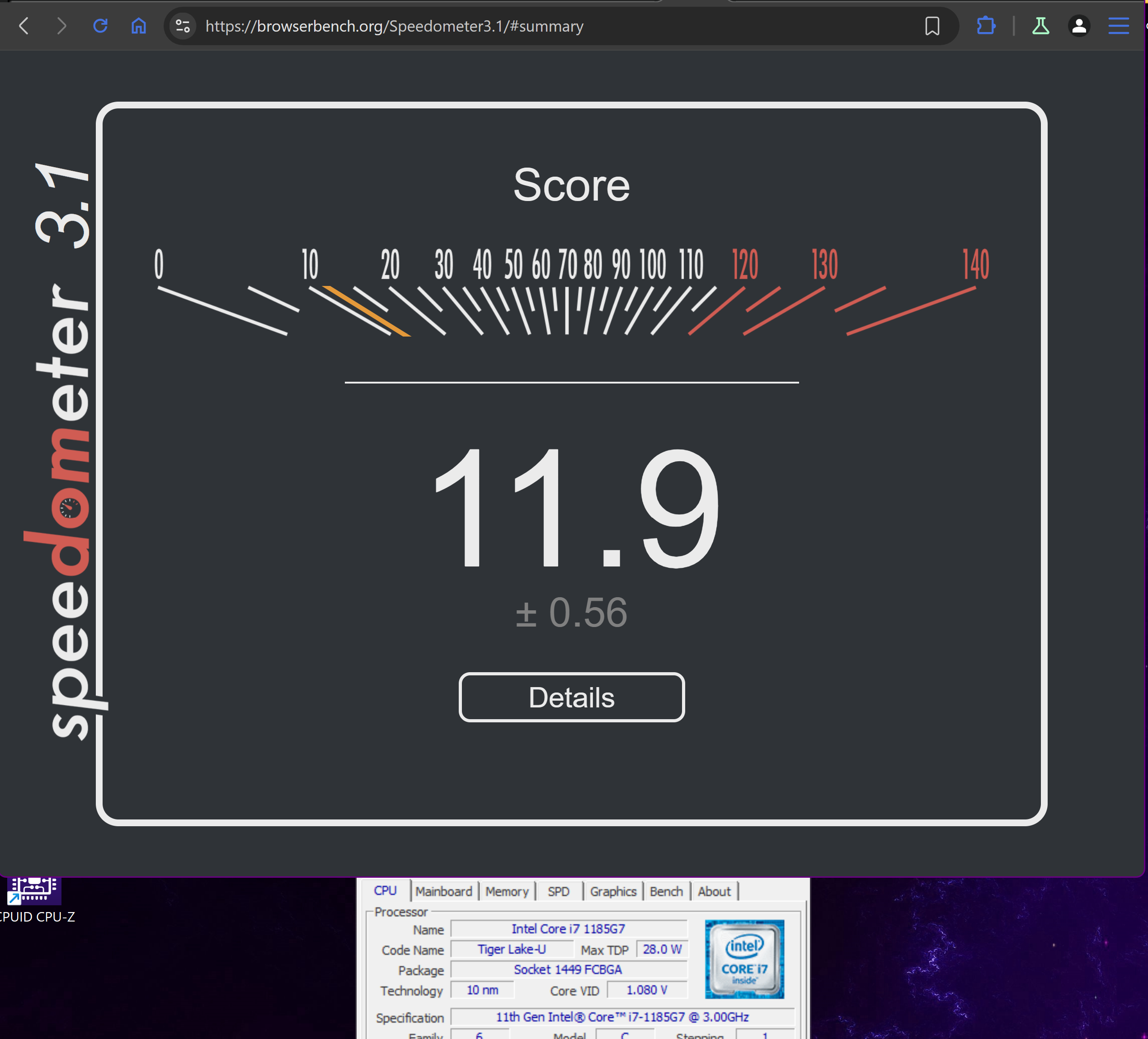 1185G7, FireFox, CachyOSWanglblows 11 only managed 9.90