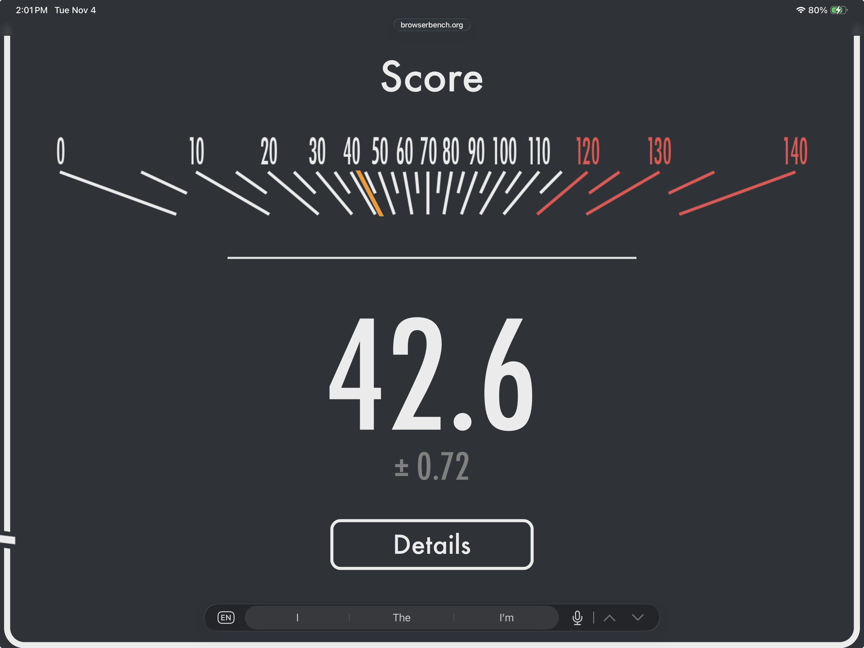 >>107106012Ah, content blockers were off, but I still had adguard extension “active”. Anyways here’s a clean test, with recent .1 update.>ipad Pro M4, ipadOS 26.1A bit better.