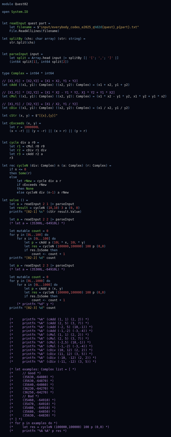 return [x1 * x2 - y1 * y2, x1 * y2 + y1 * x2]