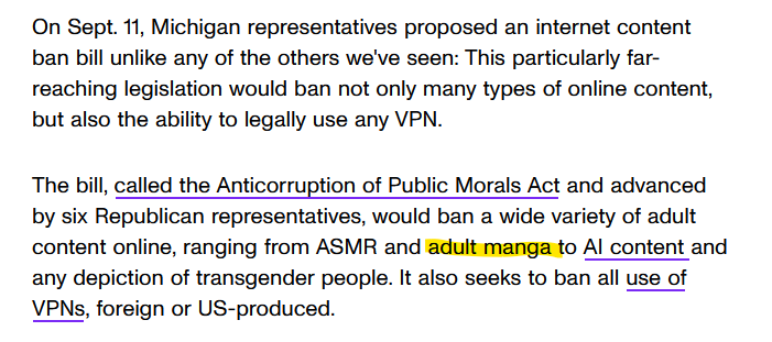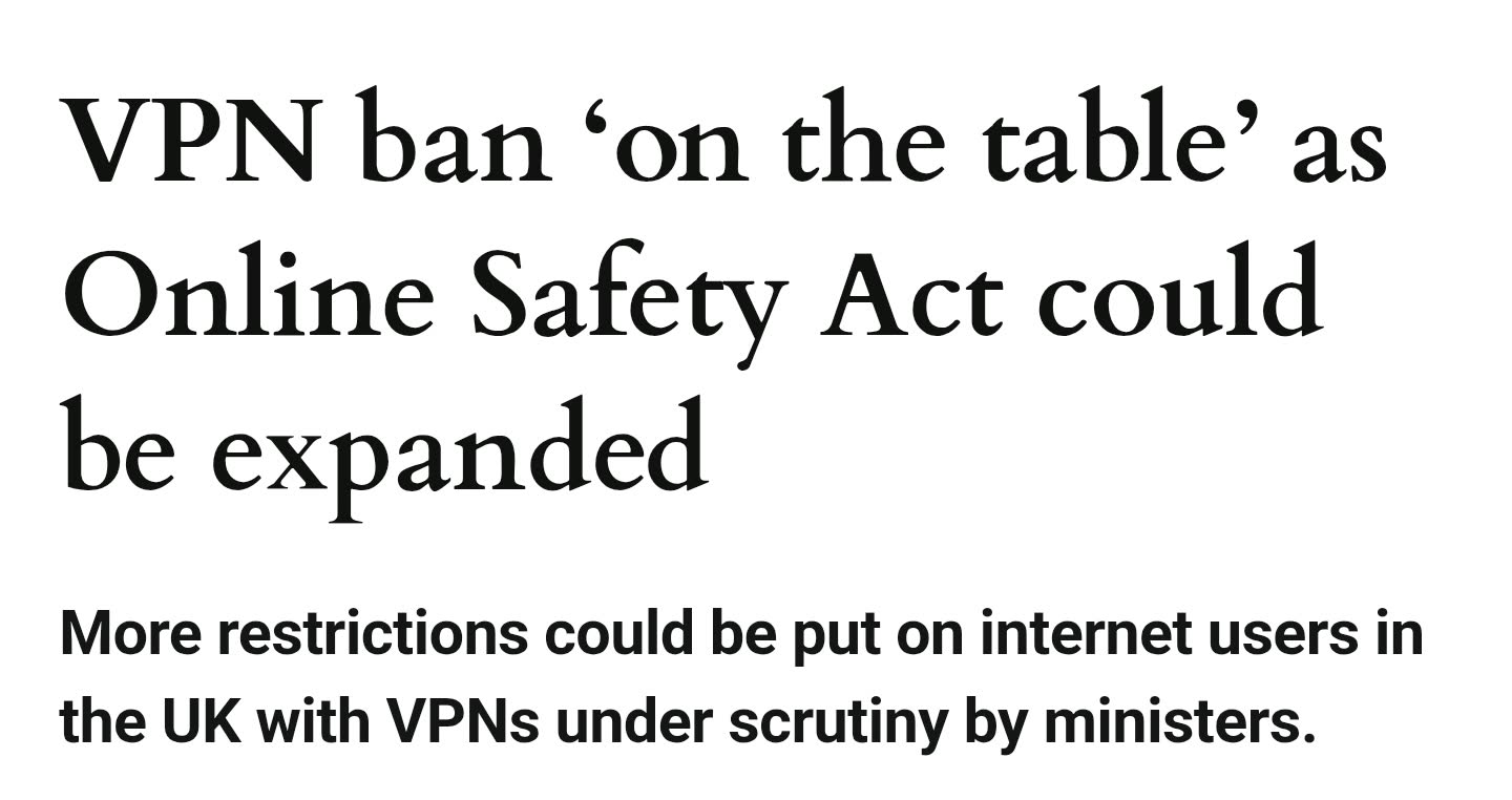>>107101650>“And there are no current plans to ban the use of VPNs, as there are legitimate reasons for using VPNs.”I got you bro, screenshots are hard when you need the headline and the quote at the end of the article.