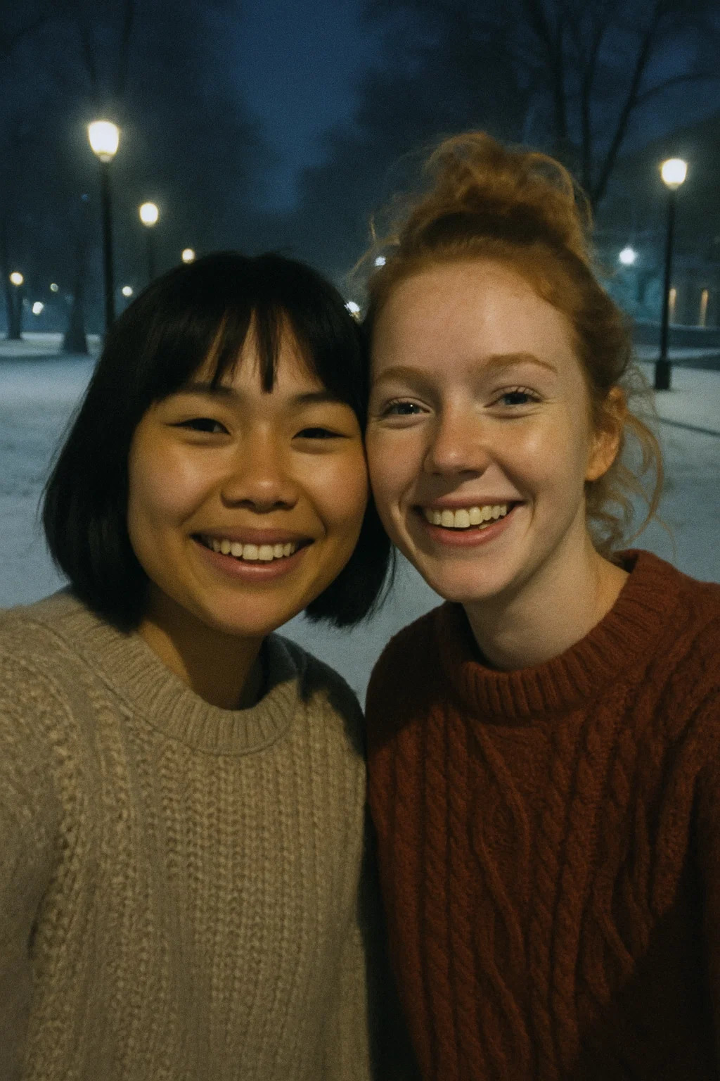 AI suck at perspectives, its improving but its noticeable>>107115293Agan, perspectiove is crooked, the mouth opf the ginger seems odd, the street lamps too. the hair seems kinda out of focus and with too much loss of detail for just a shitty grain filter. the ginger's back of the neck coloring seems odd, is it hair, is it dirty?I dont know, but should not the other ginger's eye should have light reflections too?>>107115854the eyebrows are too neat while the eyelashes are a mess, seems yanked outta a toothbrush, the pupils have a weird shape / reflections, the eyebrows are misaligned.is it me or they are trying to (over)use filters to hide the AI or the imperfections?