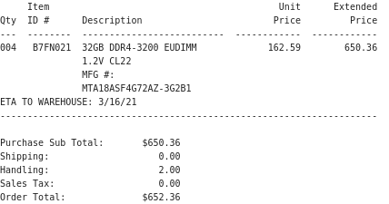 >>107119480At the time 32GB ECC UDIMMs released, it was only 2400 and 3200 MT/s and the price difference was less than 10 dollars per stick. I can tell you for sure, people brought 3200 over 2400 in droves. That's why now, like for like, 3200 is actually even cheaper than 2400 on something like Ebay, same vendor.