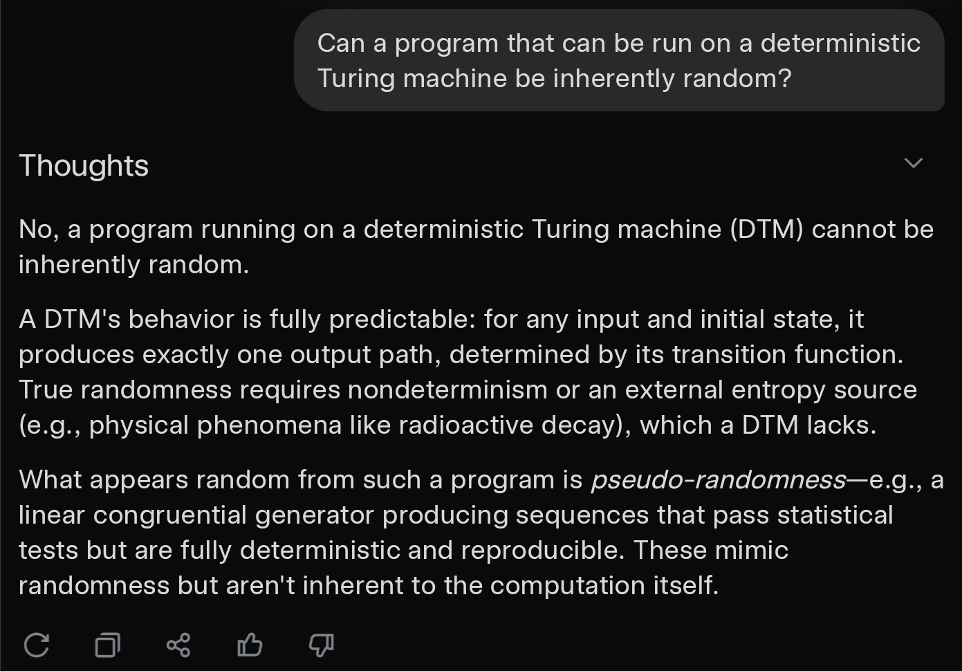 >>107124210Yes, it does. Anything that can be run on a deterministic Turing machine isn't "inherently random".