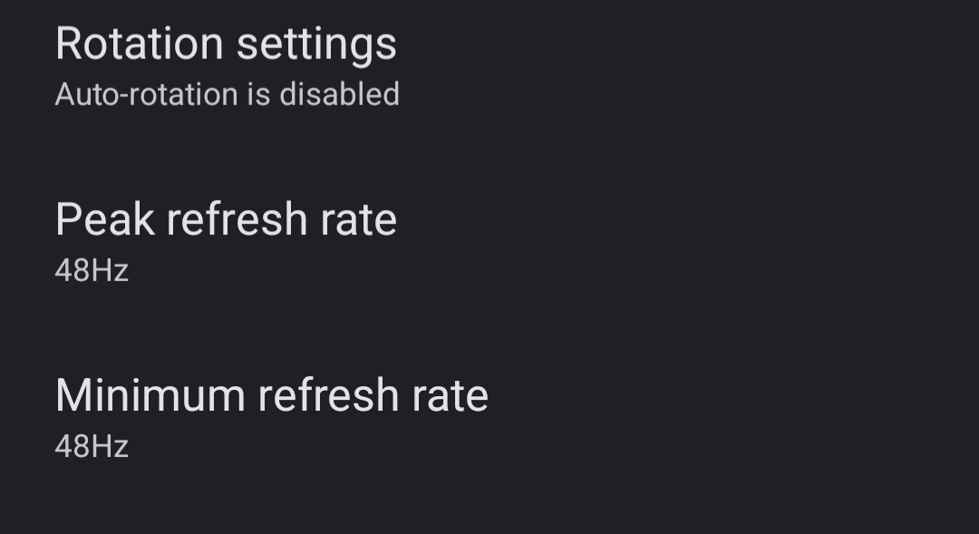Just changed mine to this. I had it at minimum of 60 and peak of 120. I don't really know when it is at 120 or 60 based on that. Well as far as 48 goes I've been using it in the time it took to screenshot that image, edit it, and now you're this out. It's mildly jarring but honestly probably won't notice it by tomorrow. It was the same when I changed the colors from vibrant to natural.