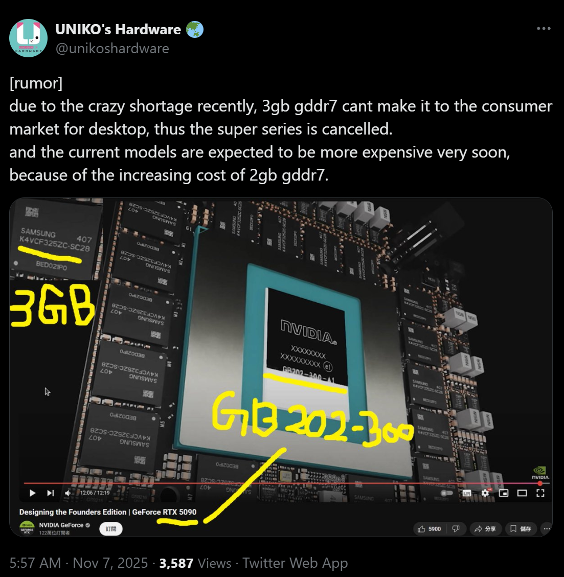 https://x.com/unikoshardware/status/1986674389300224279RTX 50 SUPER SERIES CANCELLED - NO 3GB MODULES DUE TO DRAM/VRAM SHORTAGECURRENT CARDS WILL HAVE THEIR PRICES JACKED UP VERY SOON JUST LIKE RAM IS NOWOkayI'm done waitingI'm building this month then fucking off this entire general for 10 yearsFUCK THE EARTH BUY NOWIF YOU NEED TO BUILD NOW DO IT NOW2026 IS GOING TO BE A FUCKING SHITSHOW