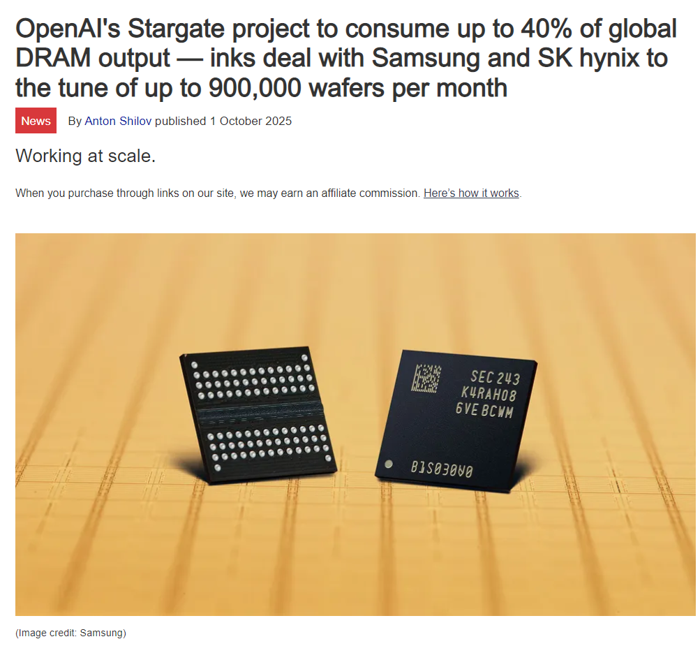 >>107130802>When will RAM prices return to normal?Open AI is buying DRAM wafers direct from the source. The wafers. Not even split into chips yet. About 90% of the wafer becomes chips. That are buying 10% waste. That's how fucked and choked supply is. You guys really have to understand the insanity going on.