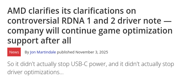>>107135054They are still on the maintenance branch, which is the polaris and vega branch and we all know the radeon 7 was matching the 6600xt before they were moved unto that branch https://www.youtube.com/watch?v=dkPPejQXFNo