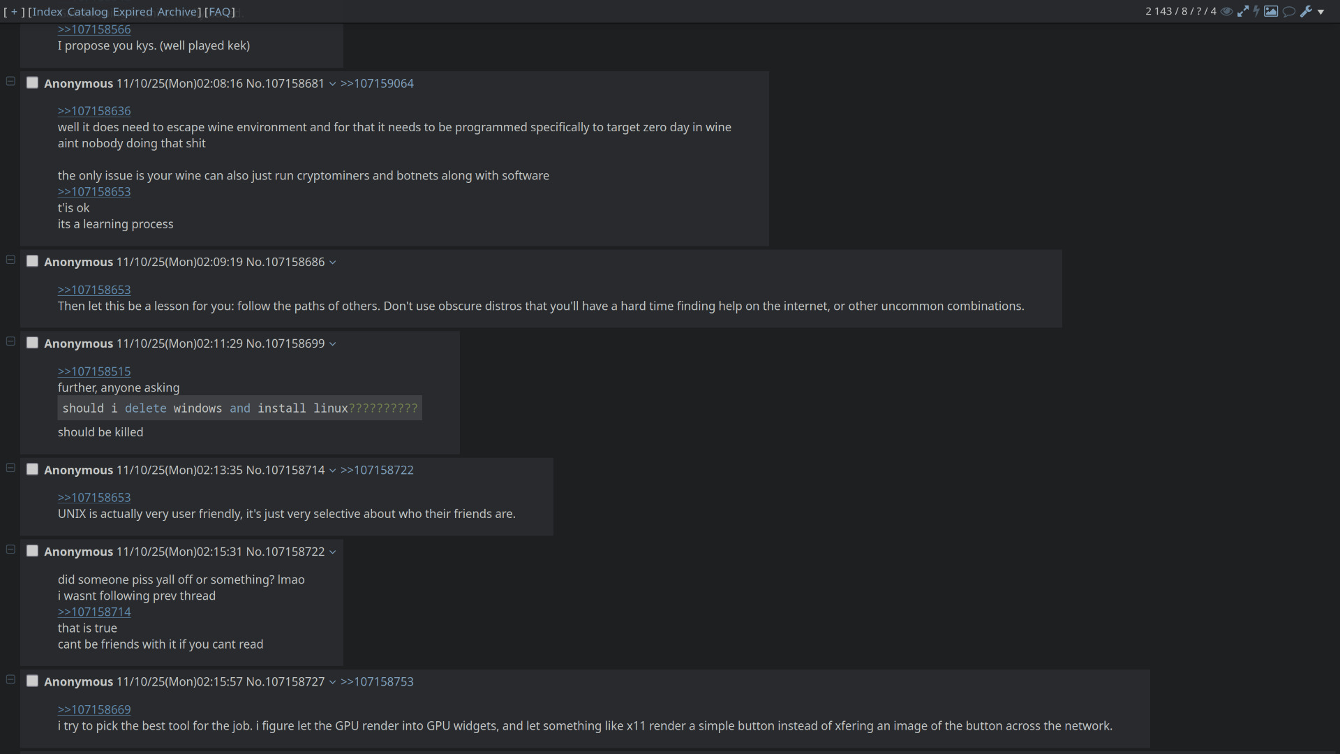 Agreed, let's remove "friendly" from the thread. Anyone who comes to us for help after breaking their system with LLM scripts should be told to git gud.