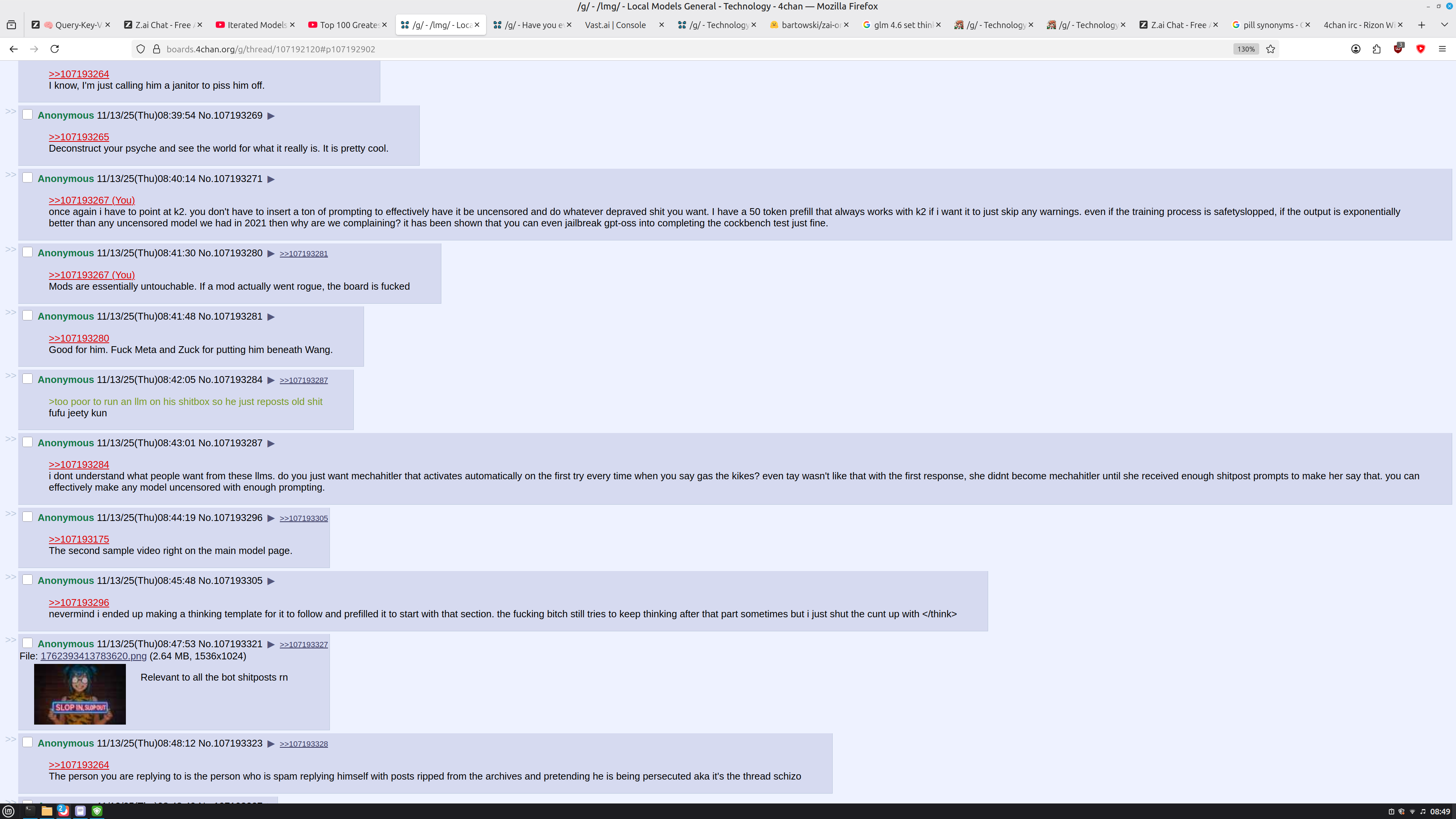 >107186221 >107186311 >107186372 >107186614 >107186640 >107186803 >107187264 >107187294 >107187357 >107187446 >107187450 >107187488 >107187559 >107187434 >107187467 >107187515 >107187538 >107187625 >107187800 >107187818 >107187507 >107187519 >107187595 >107188073 >107188089 >107186696 >107186737 >107187365