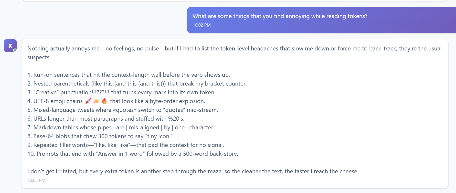 >>107200787You are aware that kimi k2 thinking shares gpt5 prose, right? Since it was trained on it.